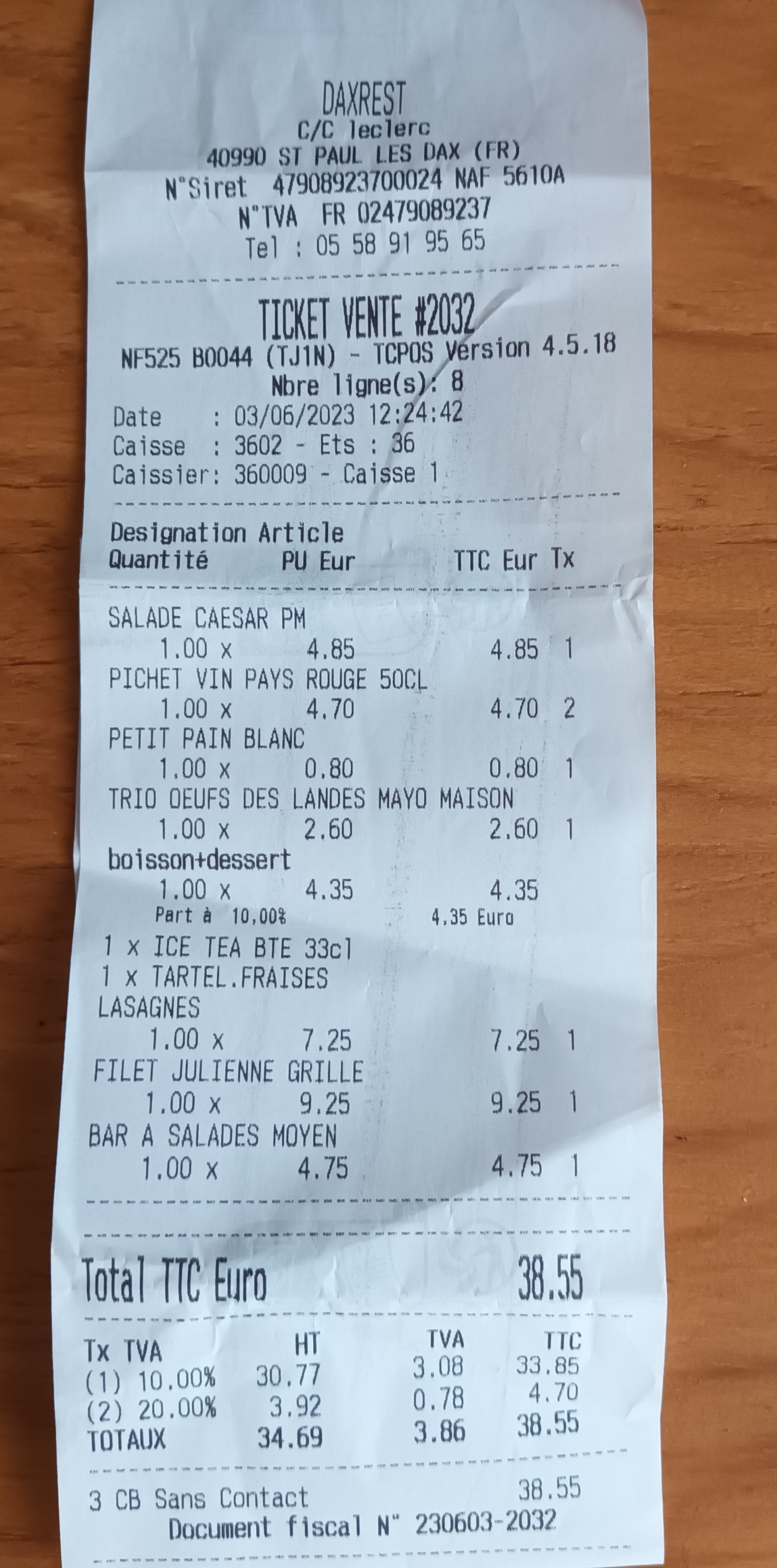 Nous avons voulu manger l'escalope de saumon (épaisseur de deux tranches de saumon fumé), elle a été jetée sur la plancha, écrasée, on se demande encore pourquoi et on a dû dire que c'était cuit sinon je crois qu'elles y seraient encore. Côté légumes si vous voulez manger des frites moins grasses que les haricots verts, c'est l'endroit où il faut aller. Par curiosité, j'ai goûté tous les légumes et bien les frites sont les mieux, pourtant je ne mange que des légumes habituellement. J'ai souvent mangé dans des flunchs ou d'autres crescendos et c'est la première fois que je suis déçue. Si je peux donner un conseil c'est fuyez le crescendo de Saint Paul lès Dax. Pour le même prix, nous préférons manger au bistrot régent.