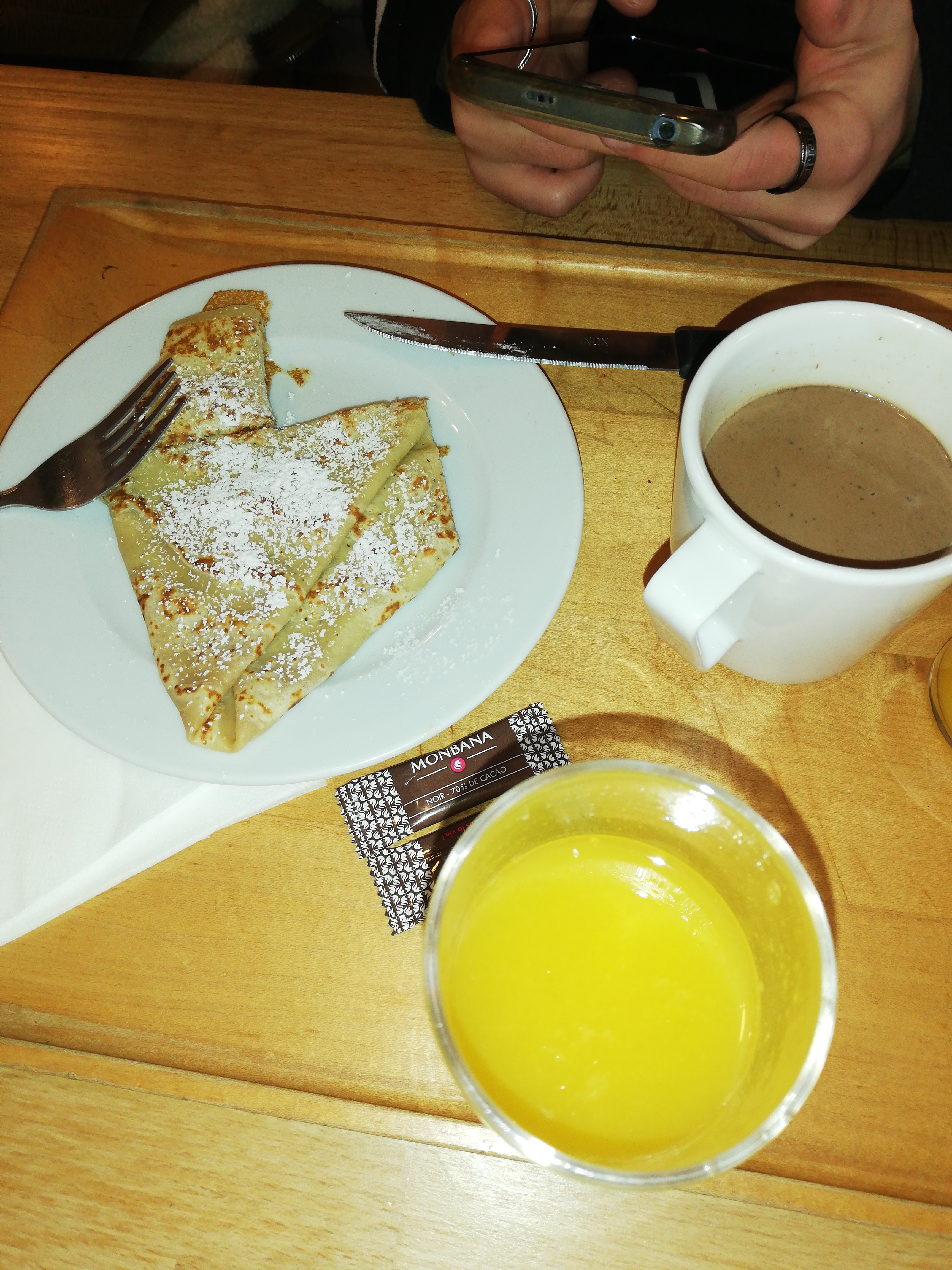 Pas beaucoup de choix niveau plats,fish and chips, donc poissons qui est censé être croustillant, n'est ni plus ni moins qu'un poisson pané cuit normalement et plus de gauffres, mais malheureusement 9n nous le dit seulement au moment de récupérer la gauffre. Proposition d'avoir une crepe a la place qui etait plus chère et me demandé de payer la différence,donc pas commerciaux. Je trouve anormal que pour un commerce de restauration, que ce soit une de la restauration rapide ou non, il n'y ai pas une meilleure gestion des produits.