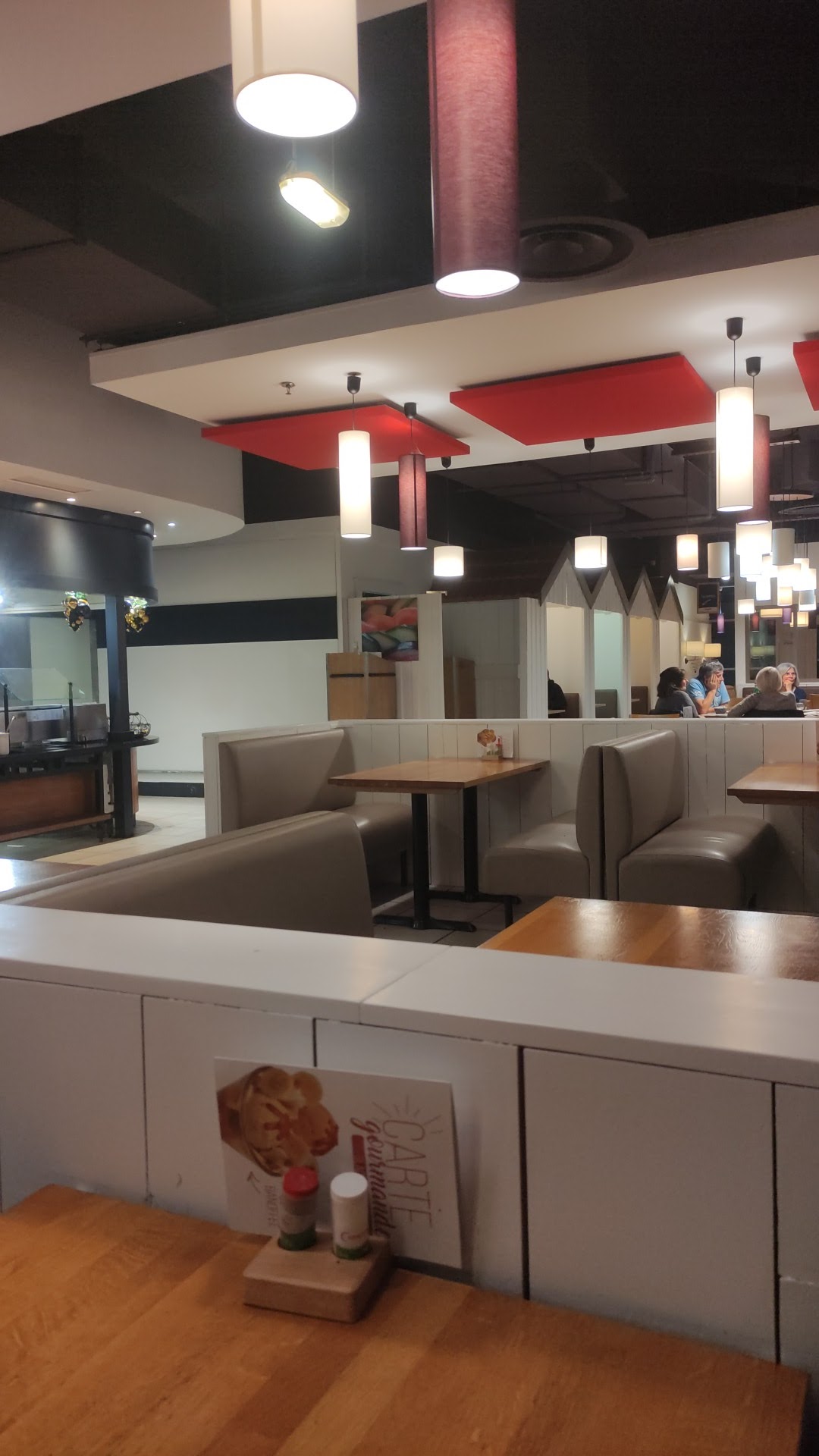 Le poisson du jour était bon , les burgers aussi , beaucoup moins de choix qu'avant, les sauces sont très diluées. Pas assez de temps pour manger son entrée car le bipper sonne pour aller chercher son plat c'est dommage . le fromage blanc sucré avait un goût rance bref un peu déçue par rapport à d'habitude