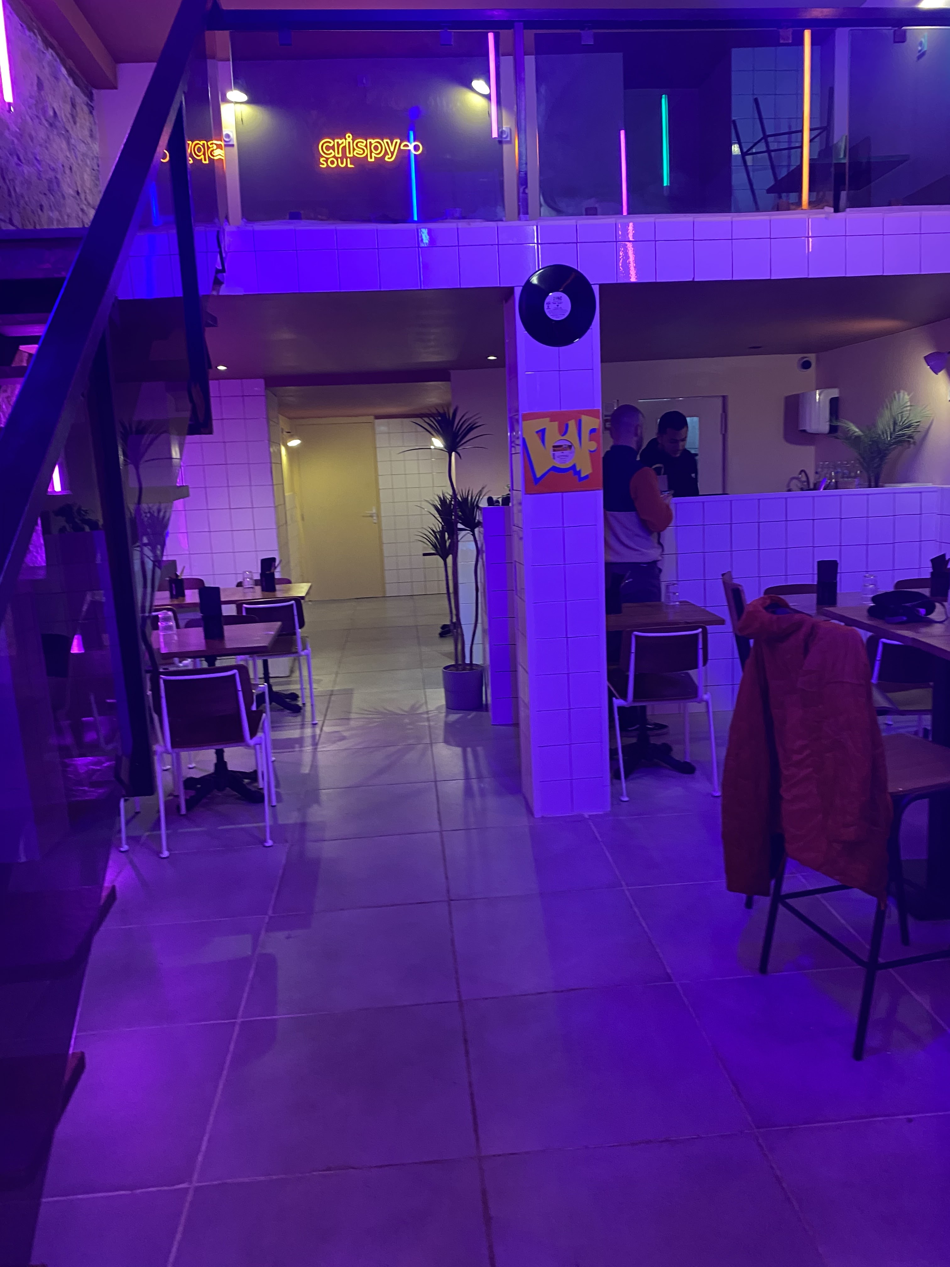 Le restaurant vaut bien plus que 5 étoiles ! L’ambiance est incroyable la musique j’en parle pas je savais pas si je devais manger ou danser ! Et les plats…un pur délice. On est venu tout droit de Montpellier avec ma copine et si je devais revenir à Lyon uniquement pour manger chez Crispy Soul ce serait avec grand plaisir !! Le serveur est d’une gentillesse ça se fait rare et surtout il est aux petits soins de ses clients franchement top ! Je recommande tous les jours de l’année ! ❤️