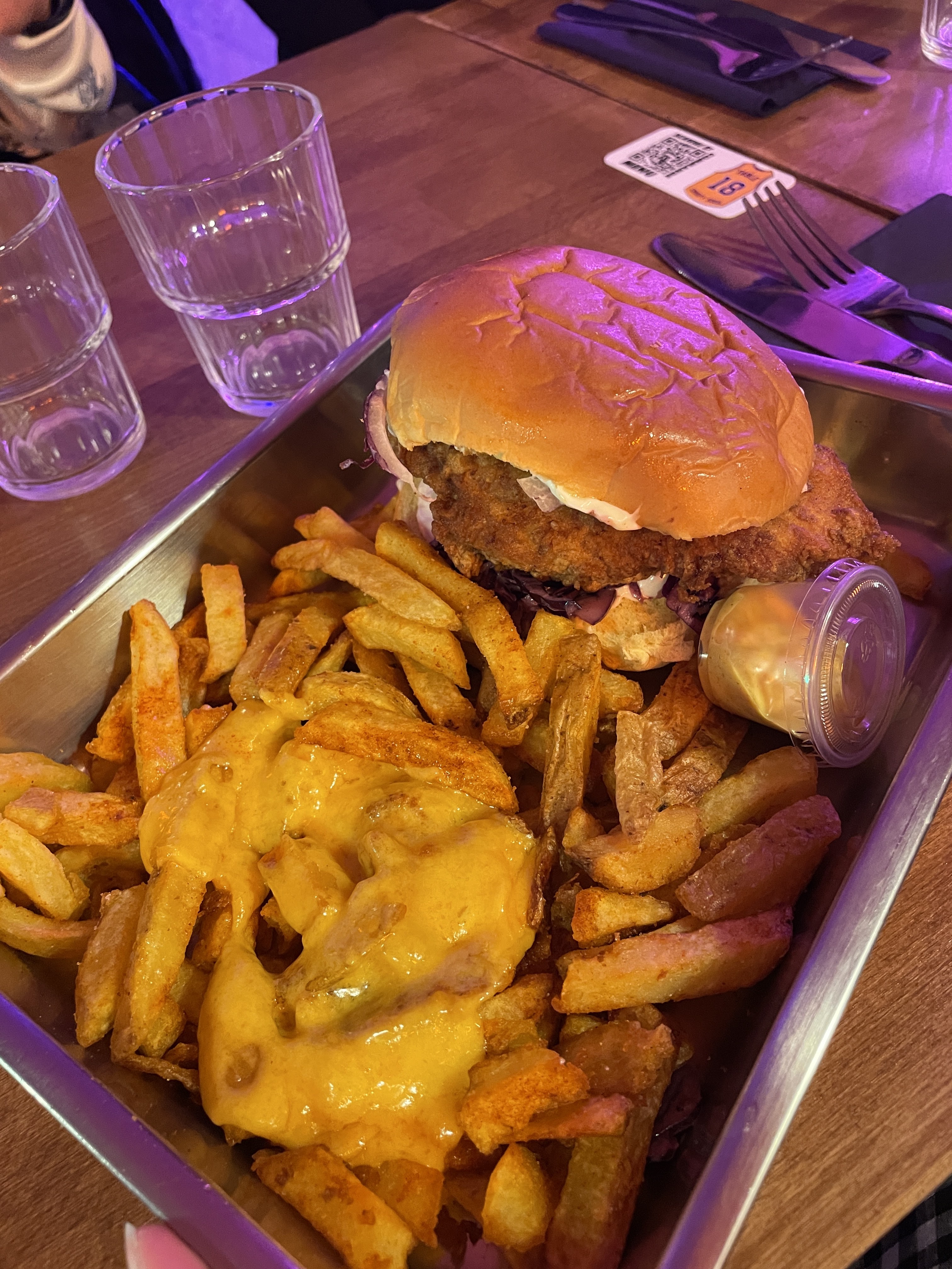 Alors, je vais commencer par décrire ce lieu. Une ambiance chaleureuse et une magnifique déco. Les gérants sont super sympathiques. Niveau nourriture il n'y a pas photo, les frites sont facilement dans mon top 3 des meilleures frites que j'ai mangé de ma vie. J'ai adoré le burger, rien à dire la dessus. Par contre légèrement déçue des tenders. Malgré un super bon goût, je ne les ai pas trouvé assez croustillants. Et pour finir les gaufres. Je n'en ai jamais mangé d'aussi moelleuse. En bref, vraiment contente de cette trouvaille, j'y retournerais à coup sûr.