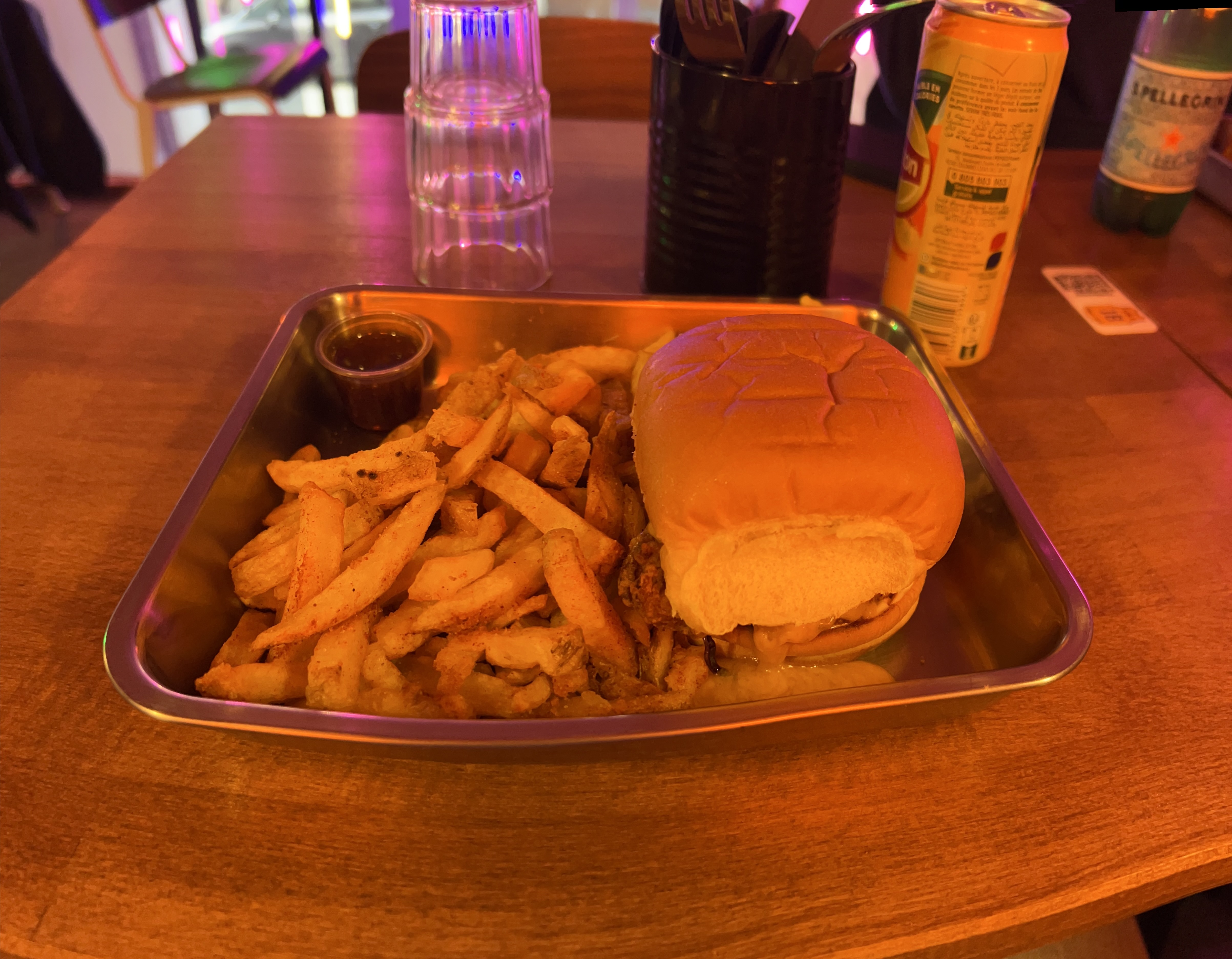 Équipe agréable, burger excellent et copieux, frites pareil, rien à dire