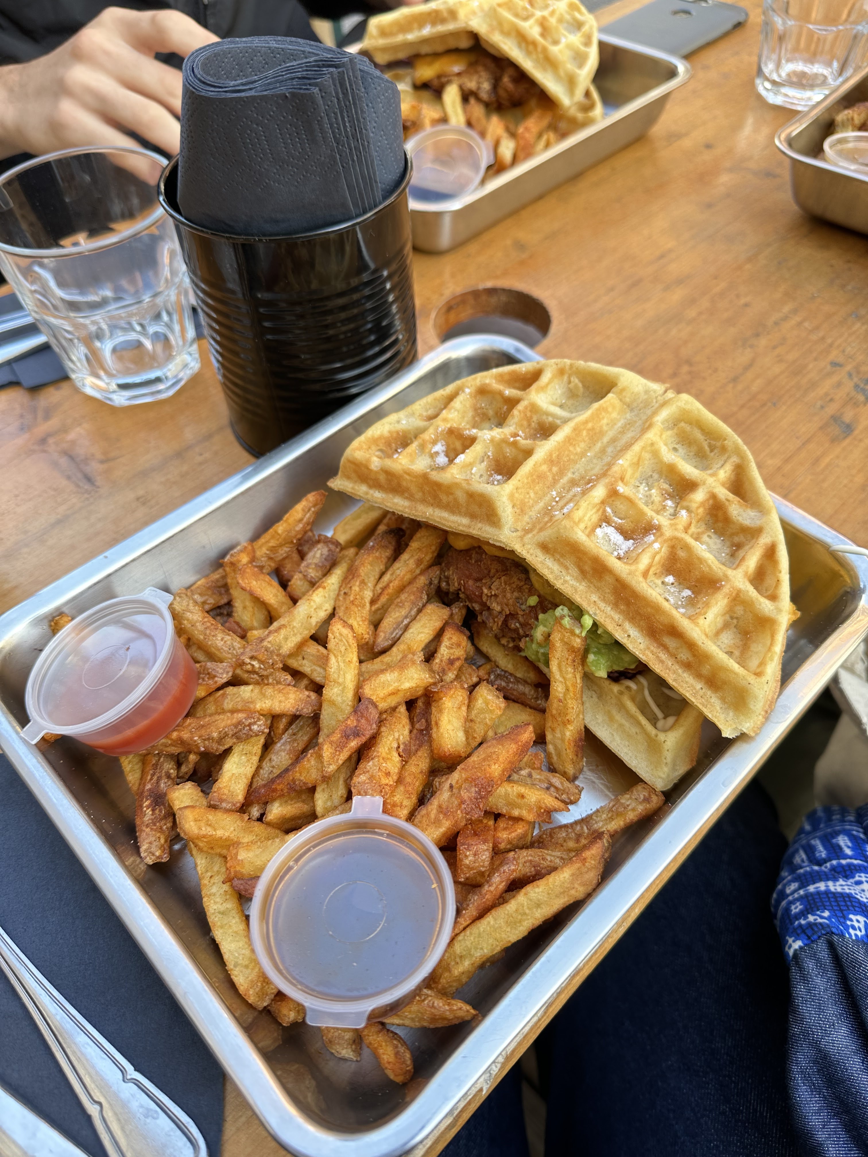 Le meilleur poulet frit de Paris. Les gaufres sont délicieuses !