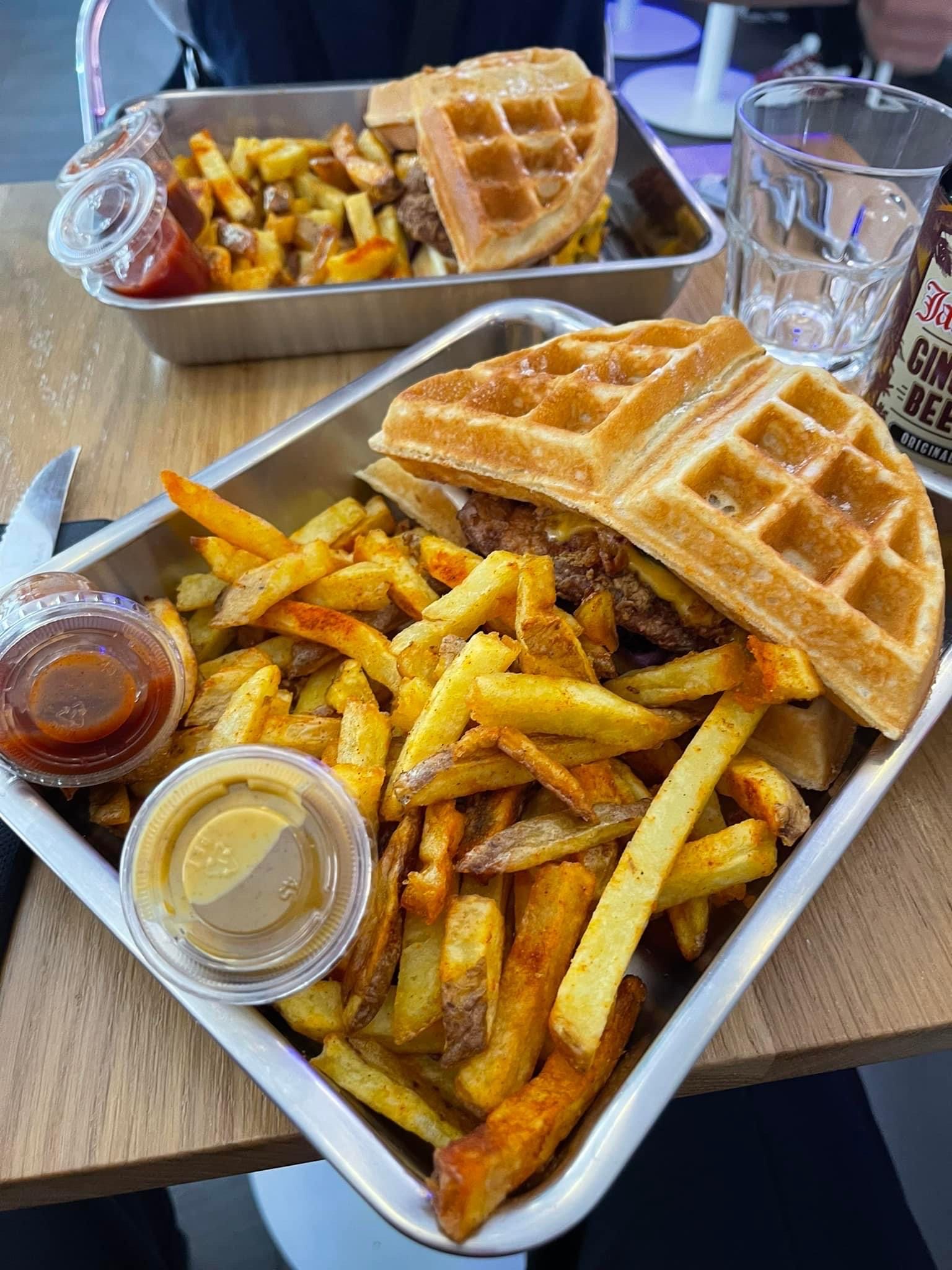 Ce n’est pas la première fois qu’on vient et c’est toujours dé-li-cieux. Les burgers/waffles burgers sont bien fat + un large choix de sauce. On a même reçu une gaufre au nutella par le chef 😌