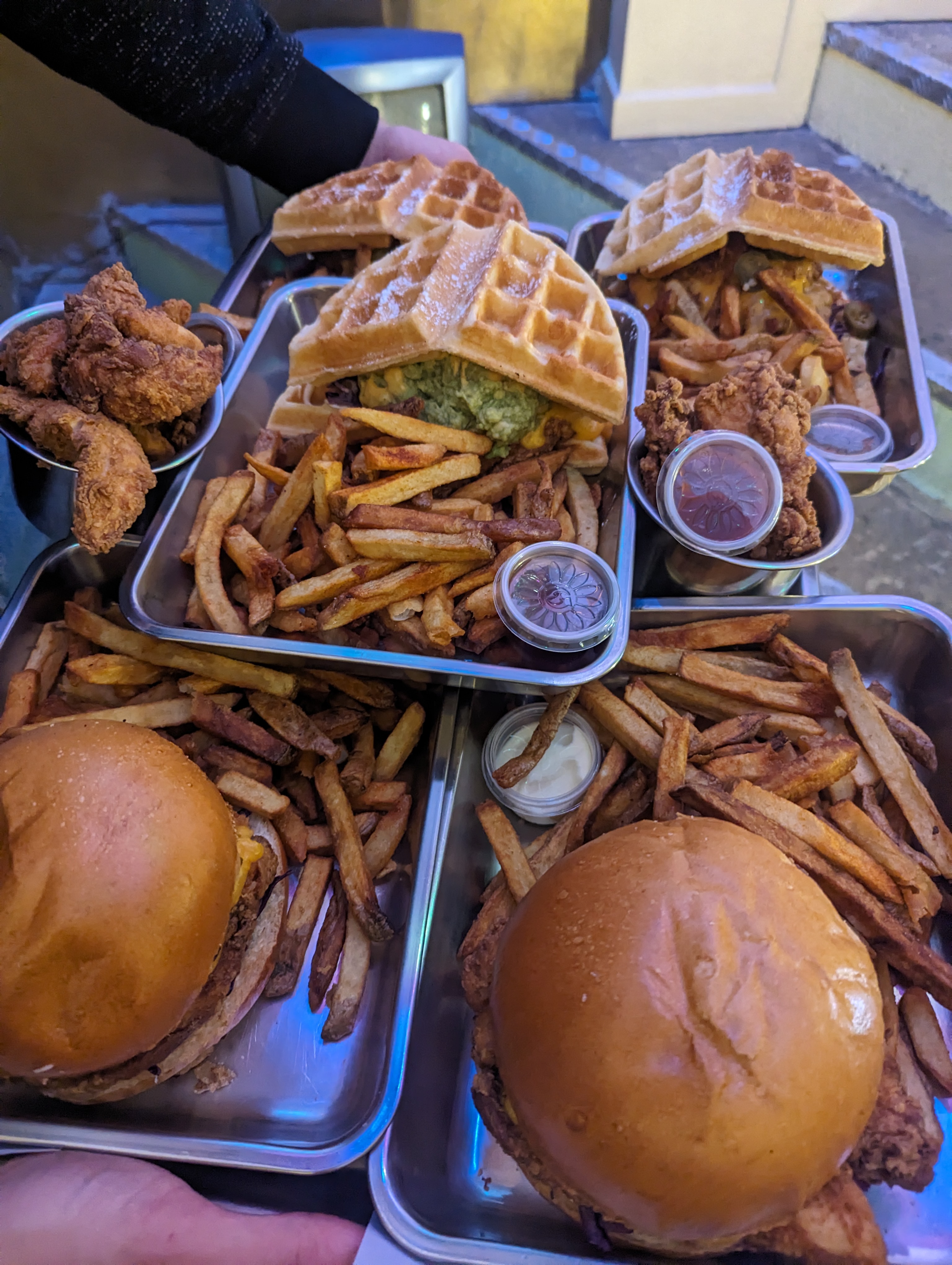 Copieux et service agréable ! Cependant, je m’attendais à mieux pour une note Google de 4,8 sur 5 lors de mon passage. Le poulet n’était pas vraiment croustillant et c’est ce que j’attends d’un burger au poulet frit. C’est bon mais sans plus, donc un peu cher pour l’expérience globale. Peut être que les gaufres valent + le coup ?