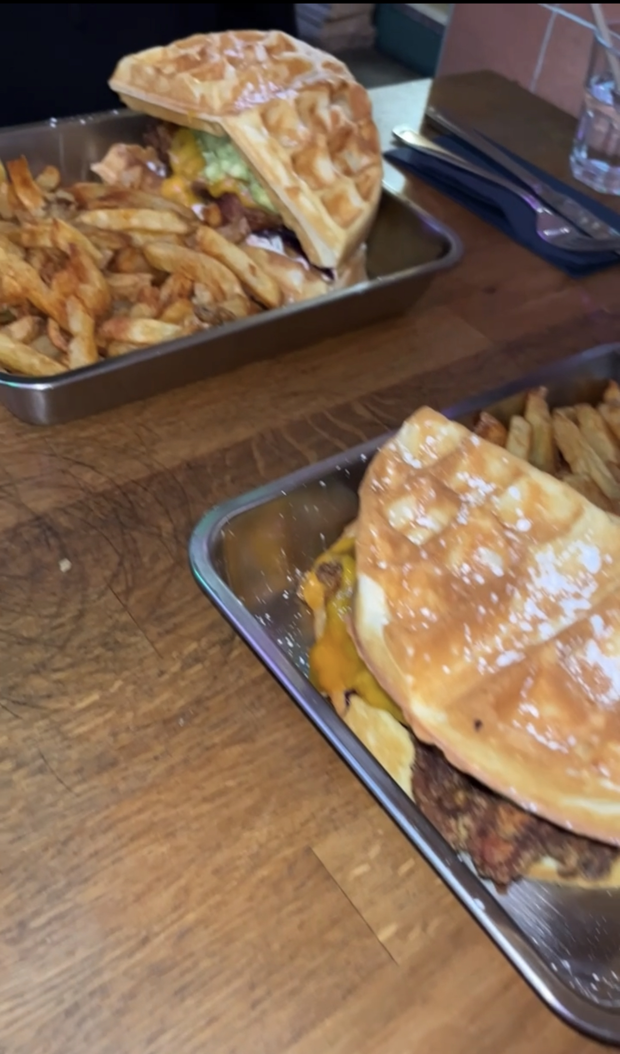 La gaufre et le poulet sont très bon, le service est rapide, super playlist. Cependant je suis déçue: les frites qui accompagnaient le burger waffle étaient carbonisées, le cornichon en description est tellement fin qu’on ne le sens pas, idem pour la quantité de sauce et de coleslaw. À 14,50€, c’est beaucoup pour pas grand chose.