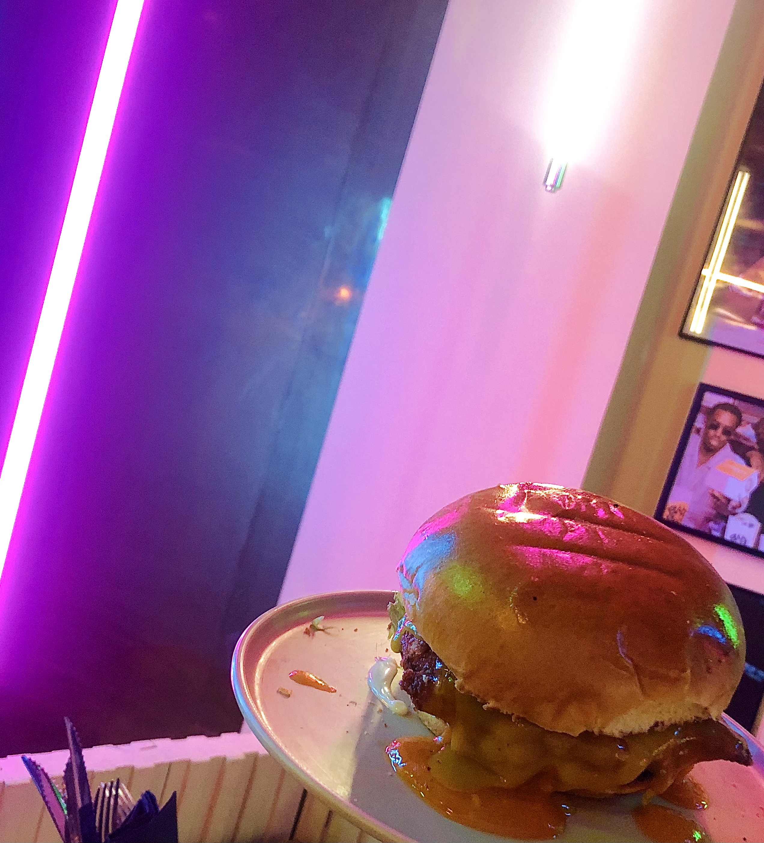Pornfood ! Découverte du concept. Cuisine généreuse (impossible de finir mes frites). Le Burger gaufre / poulet frit est tres bon, juteux, gaufre croustillante et les saveurs assez équilibrées. Je ne recommande juste pas les tenders seuls qui ne sont pas croustillants.