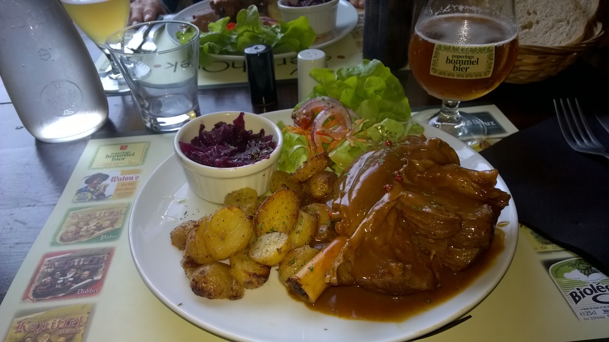 Le jarret de porc savoureux, très bien cuit, frites maison excellentes, le tout servi avec sourire et gentillesse, voilà un estaminet bien sympathique : nous reviendrons 🙂.