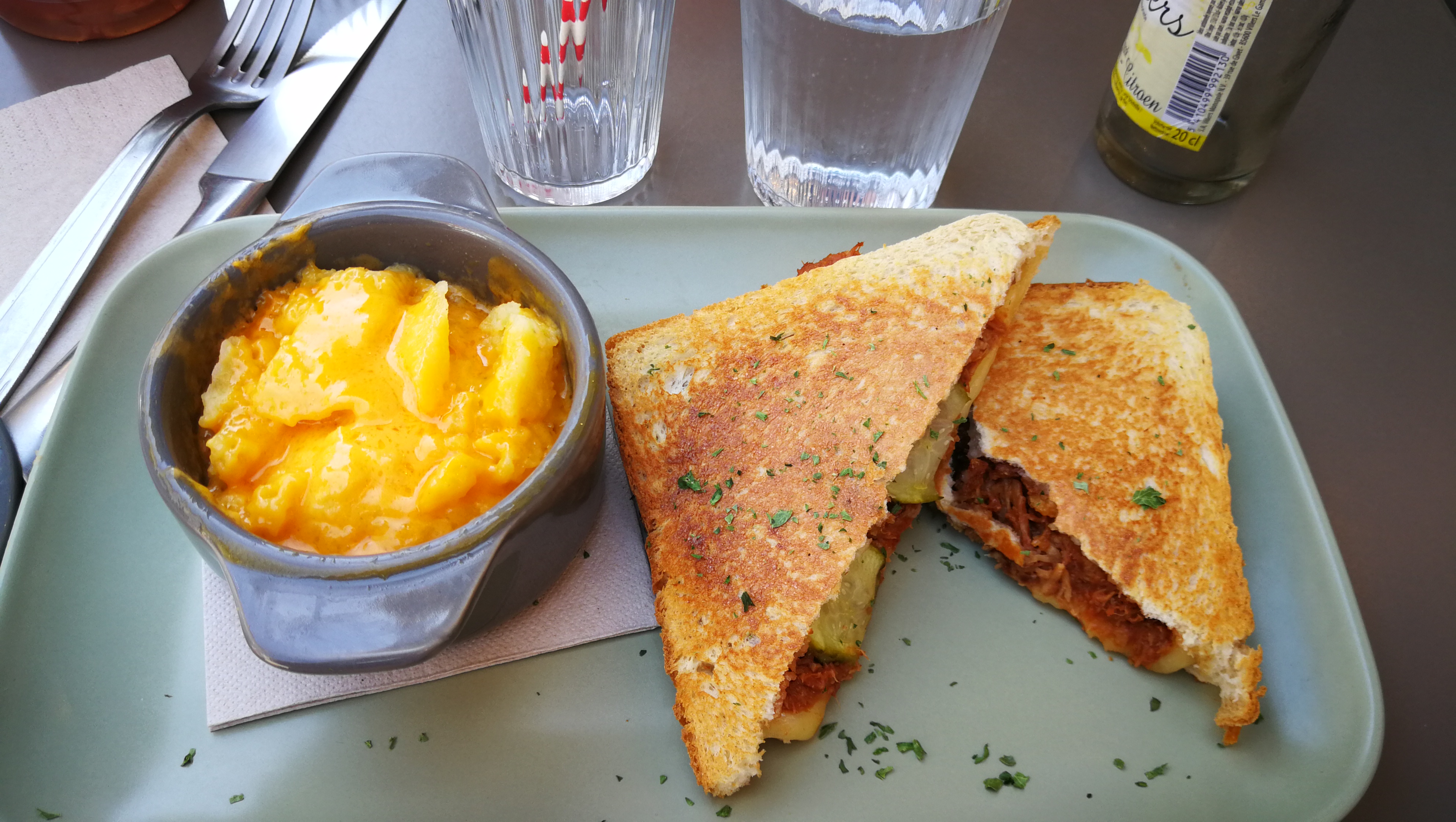 J'ai eu un très bon croque végétarien au fromage à la truffe.