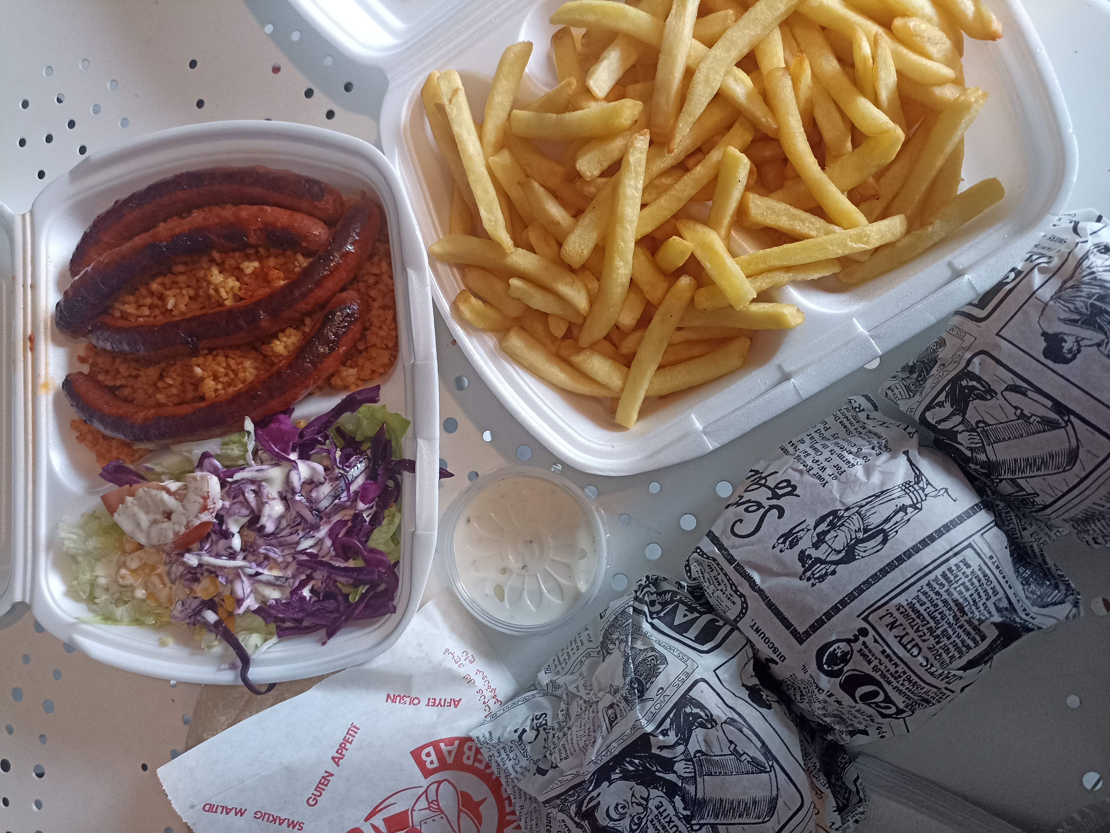 Repas cher pour 4 personne et un enfant ... Attente longue dsl pour l'attente (1h pour 4 tacos) point au-revoir. Très bon malgrès tout mais oui bcp de pommes de terre/frites dedans ...