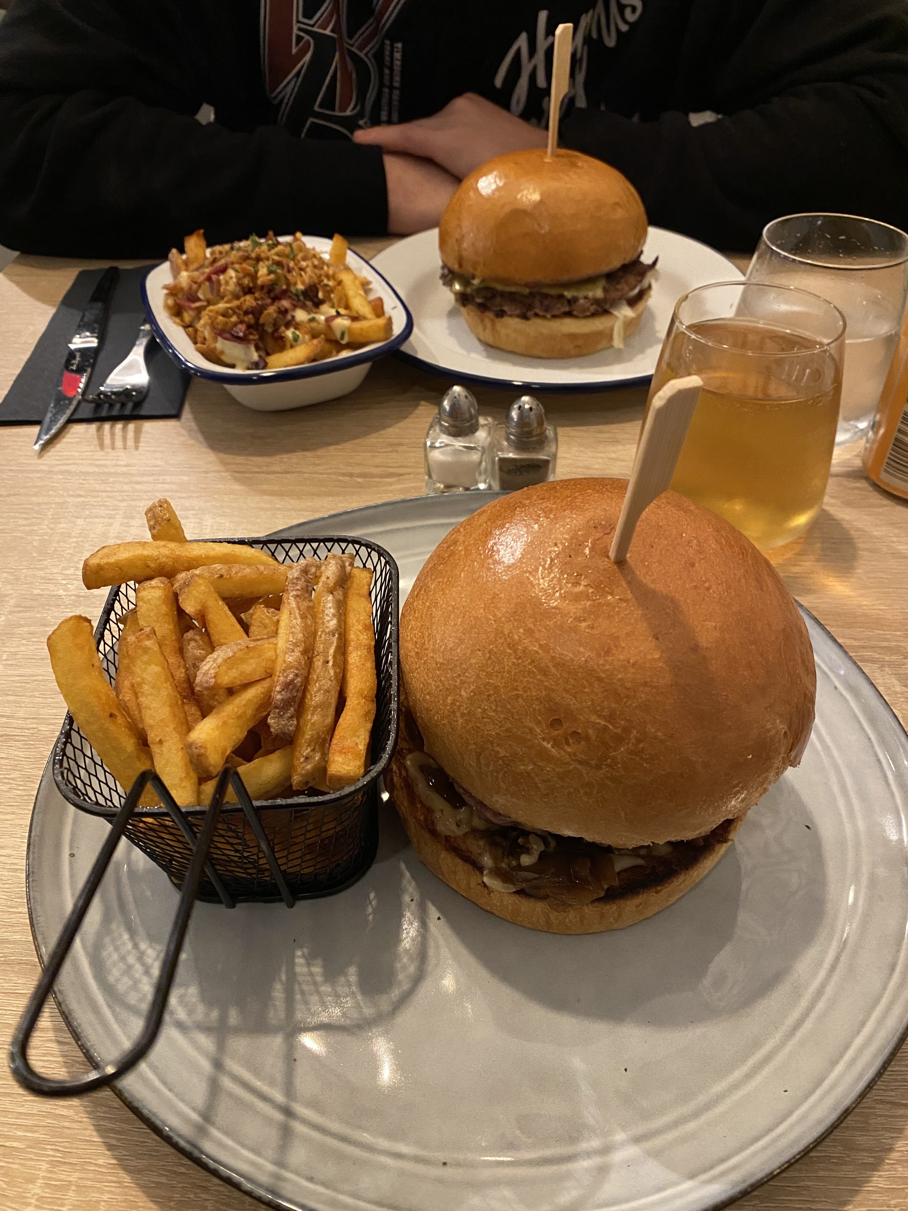 Les burgers sont excellent, les frites de même, et le dessert en tiramisu n'en parlons même pas 🫣. Je recommande fortement entre amis et famille, l'ambiance est top et les serveurs sont très gentils.