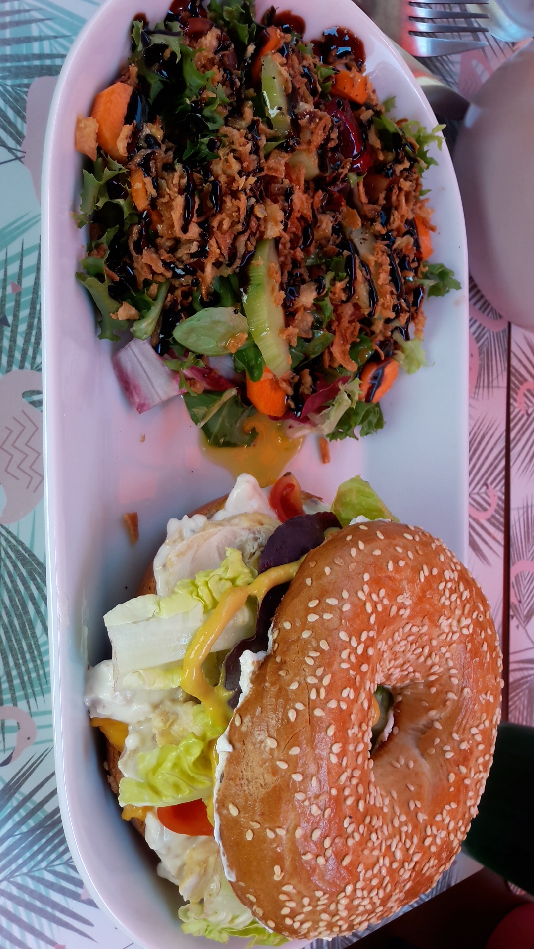 Le baggel au poulet était très bon, le personnel est agréable et les prix sont correctes. La bruschetta aux chèvres était un peu en dessous de nos attentes. Mais je recommande.