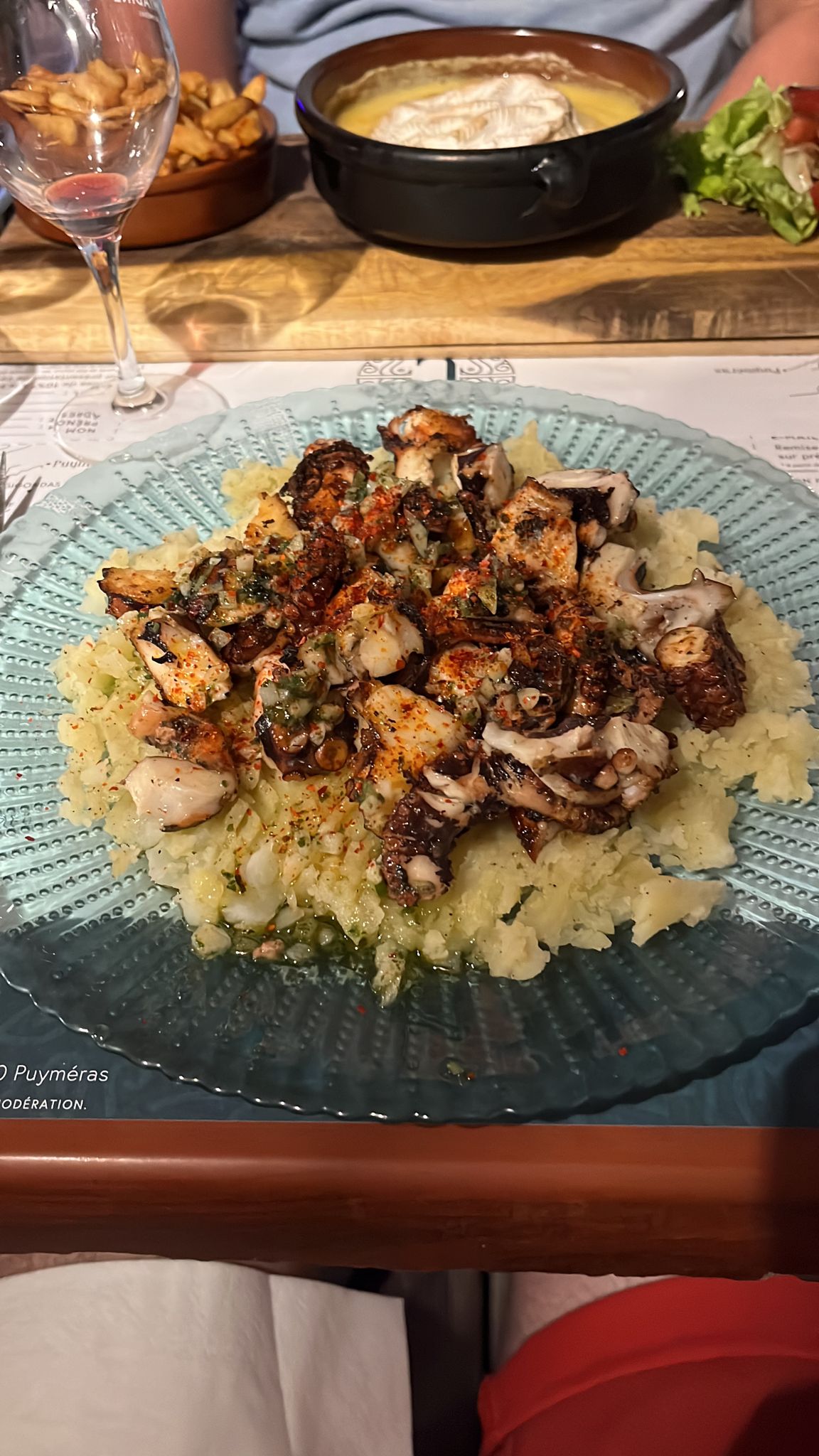 Restaurant dans un camping en pleine nature. Toute l' équipe est adorable, bon rapport qualité prix. Nous avons pris calamars à la galicienne avec purée maison bien présenté, copieux et très bon. L endroit est charmant familiale et conviviale.
