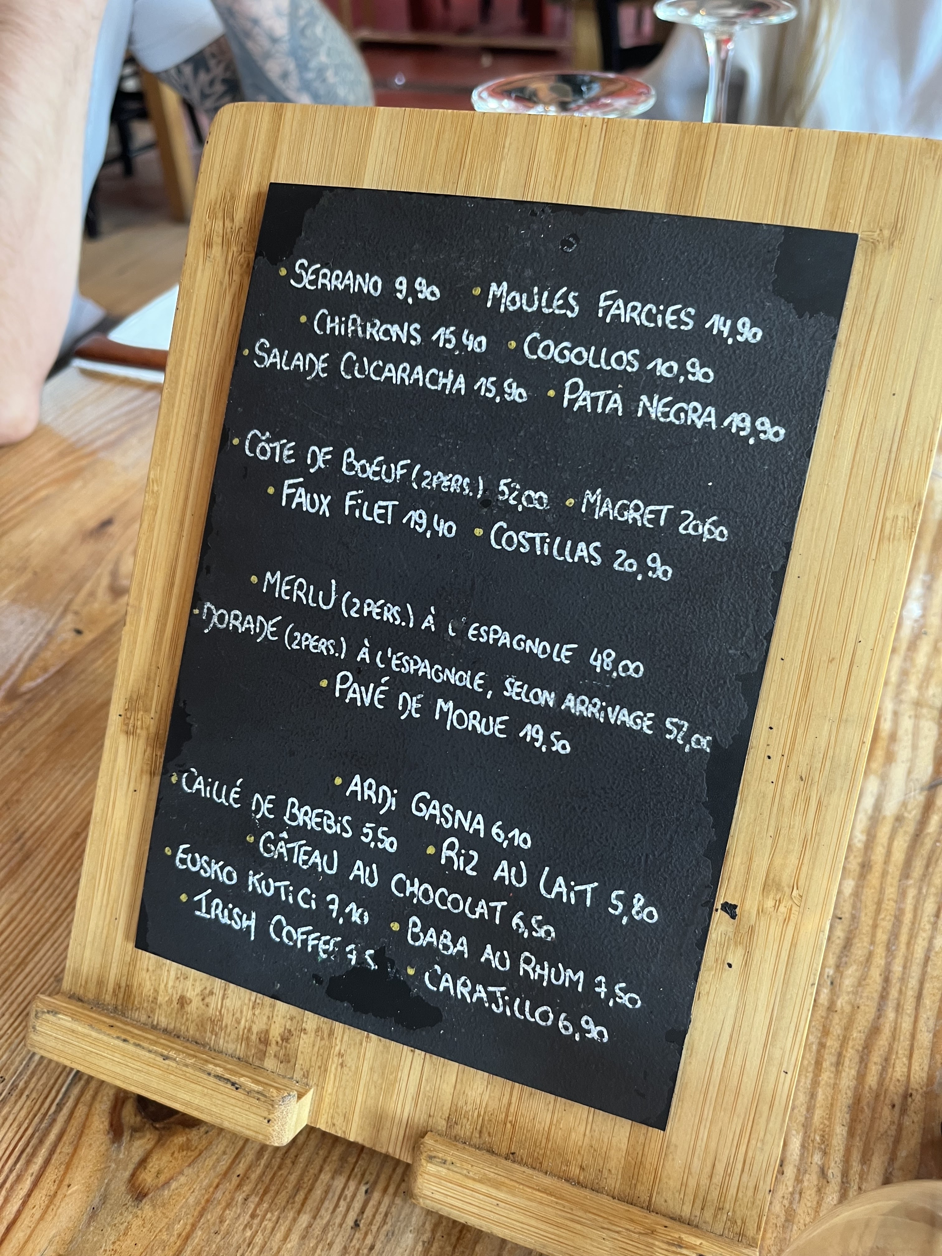 le restaurant nous a été fortement recommandé par une rencontre fortuite à Biarritz. Nous avons sympathisé avec le maître des lieux Joseph et son équipe découvert d’excellentes moules farcies et dévoré une copieuse côte de bœuf présenté pour 2 mais en réalité pour 3. Le service fut agréable et le prix raisonnable de sorte que nous le recommandons à notre tour. Frédérique et Antoine
