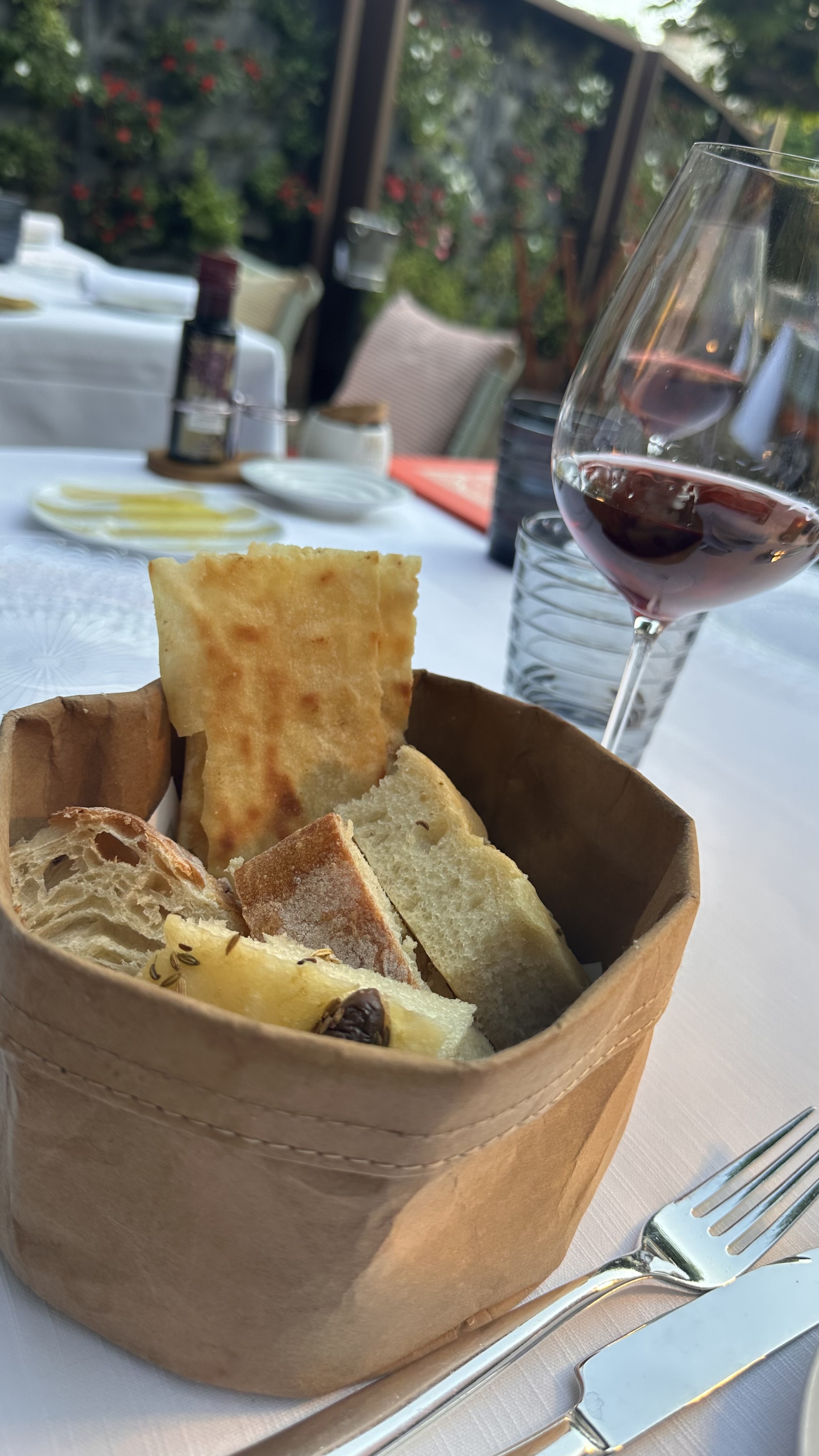 Le meilleur italien que j'ai mangé dans peut-être 50 restaurants italiens du monde entier. J'ai mangé au Byblos lors d'un voyage en solo à Saint Tropez (il s'avère que c'est une chose très inhabituelle à faire) et j'ai vraiment adoré la nourriture. Pour commencer, la corbeille à pain elle-même était au rendez-vous. La focaccia était moelleuse et moelleuse et ils avaient ce pain gaufré qui avait le goût de la base d'une pizza à croûte mince sans aucune garniture. J'ai ensuite reçu une boule de burrata accompagnée de sauce tomate et de pesto. Le fromage était super, mais le pesto - mon dieu. Je l'ai tellement aimé que j'ai demandé une tasse supplémentaire de pesto nature pour manger avec la focaccia moelleuse. Enfin, le clou du spectacle de la soirée a été la pizza aux truffes. J'ai mangé toute la tarte moi-même et la croûte a juste fondu dans ma bouche. Même si la pizza refroidissait. Je suis intolérant au lactose et je viens de décrire comment je mangeais du fromage sous différents formats. Croyez-moi, ça vaut tout. PS - J'ai bu une coupe de champagne avec mon repas et je n'ai pas eu le temps de prendre un dessert. La petite friandise qu'ils m'ont offerte à la fin était un biscuit sablé avec de la pâte à tartiner aux noisettes et c'était aussi délicieux.