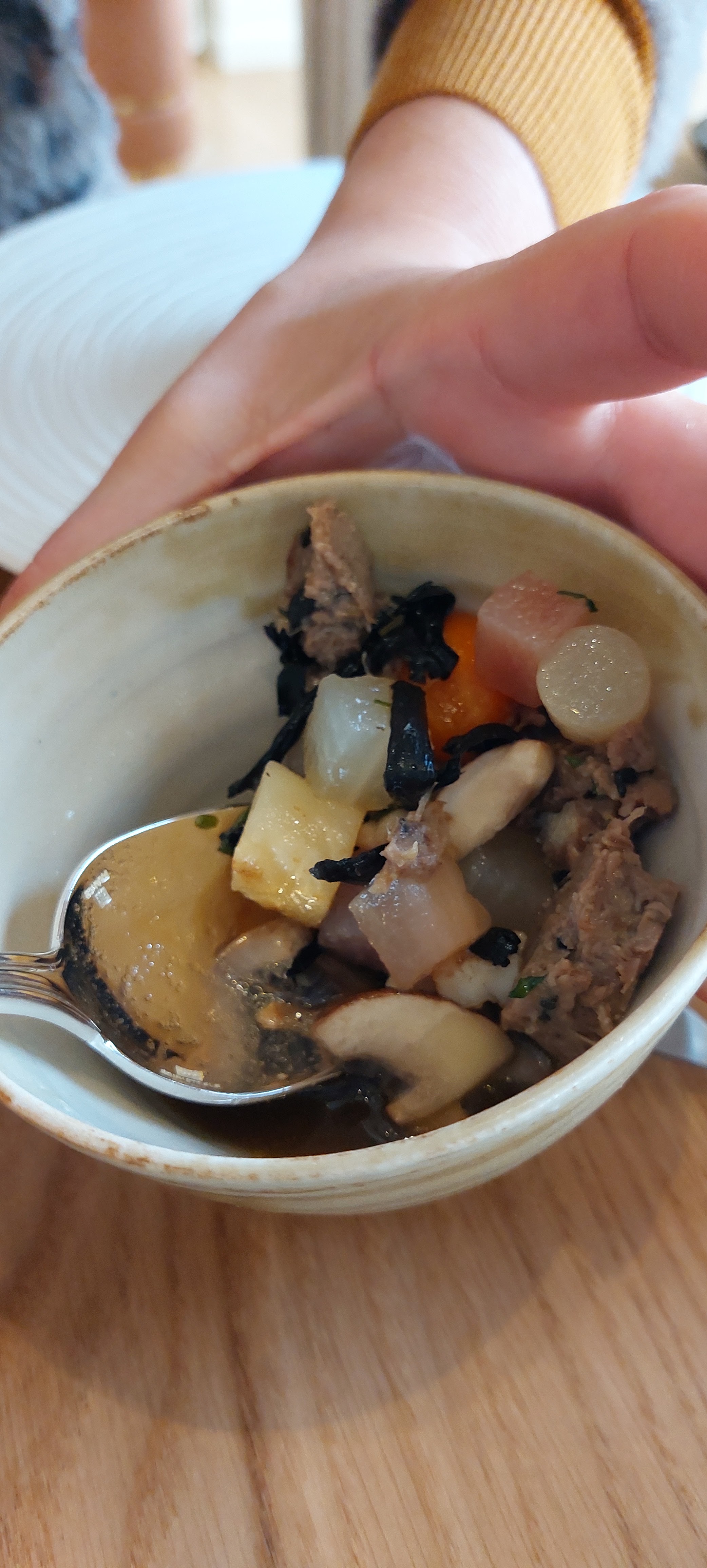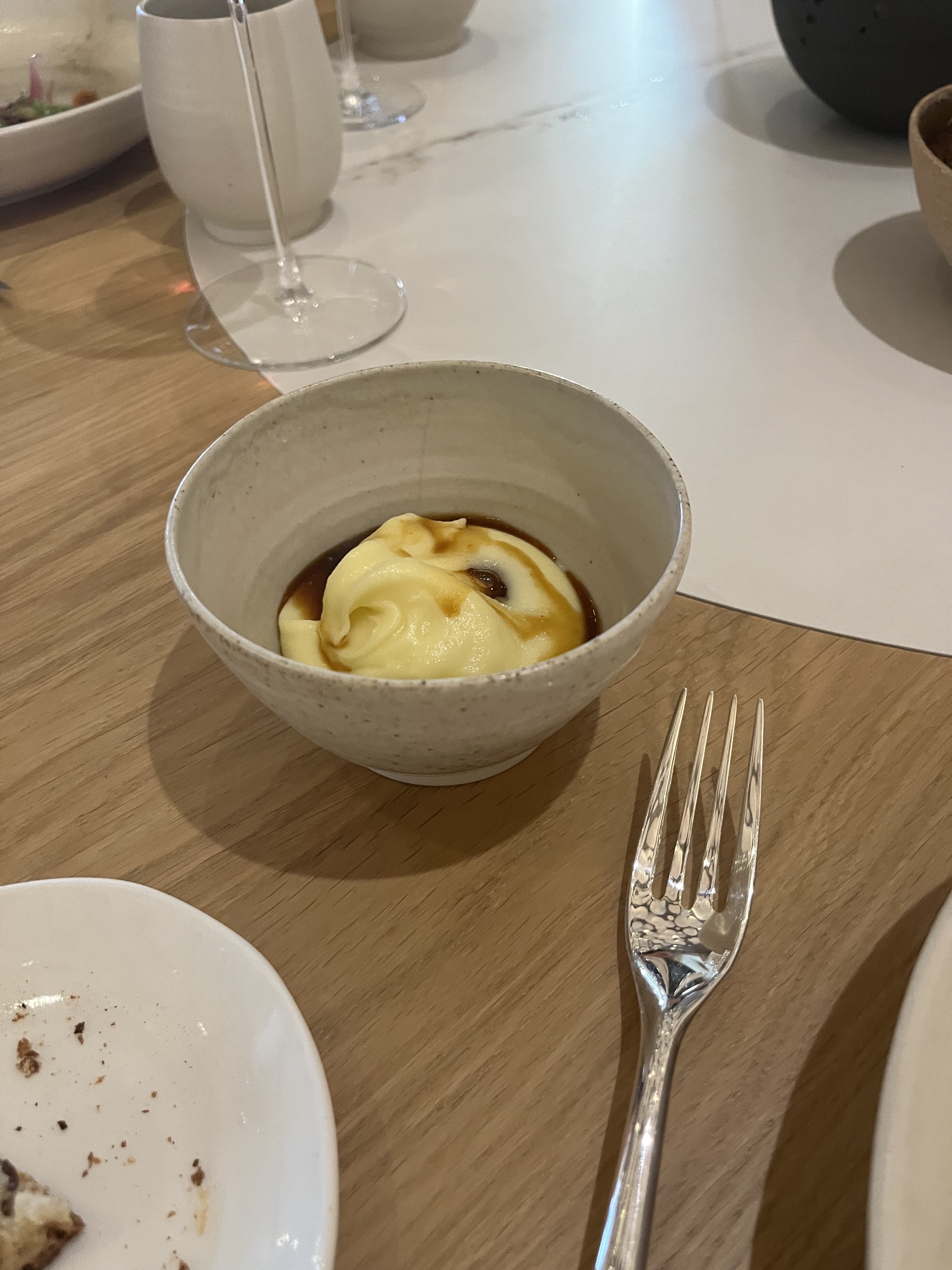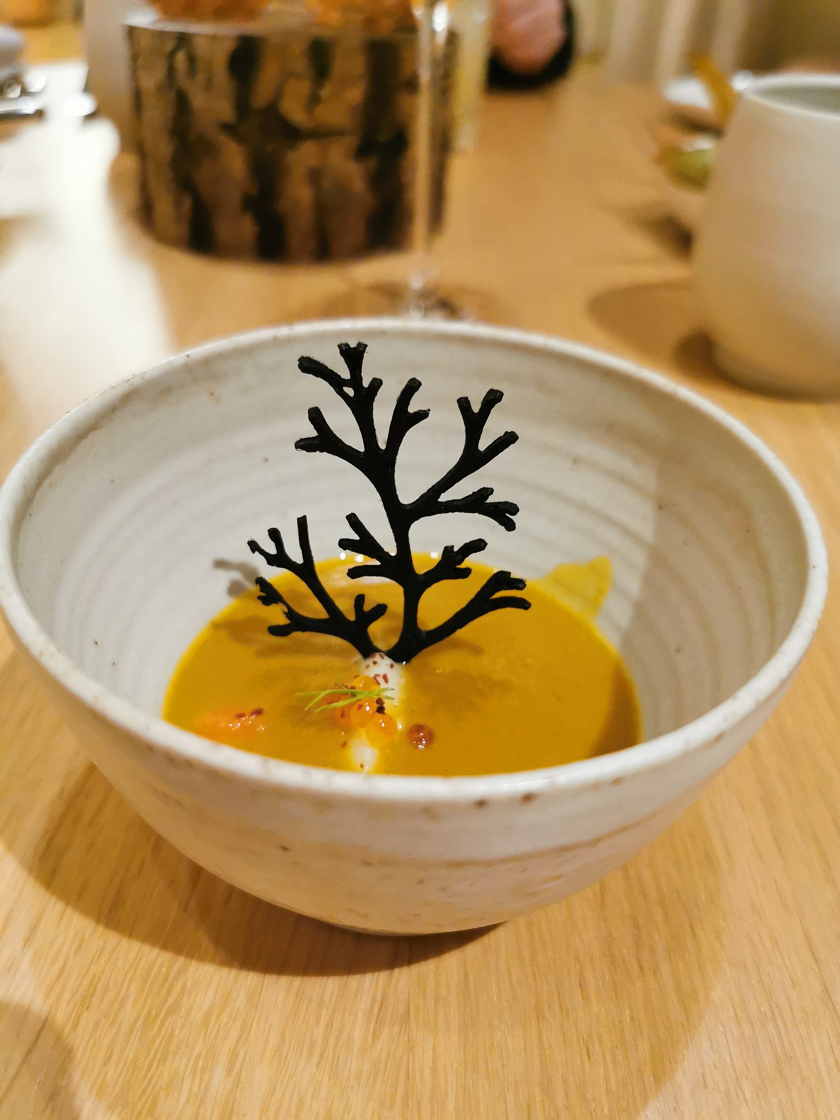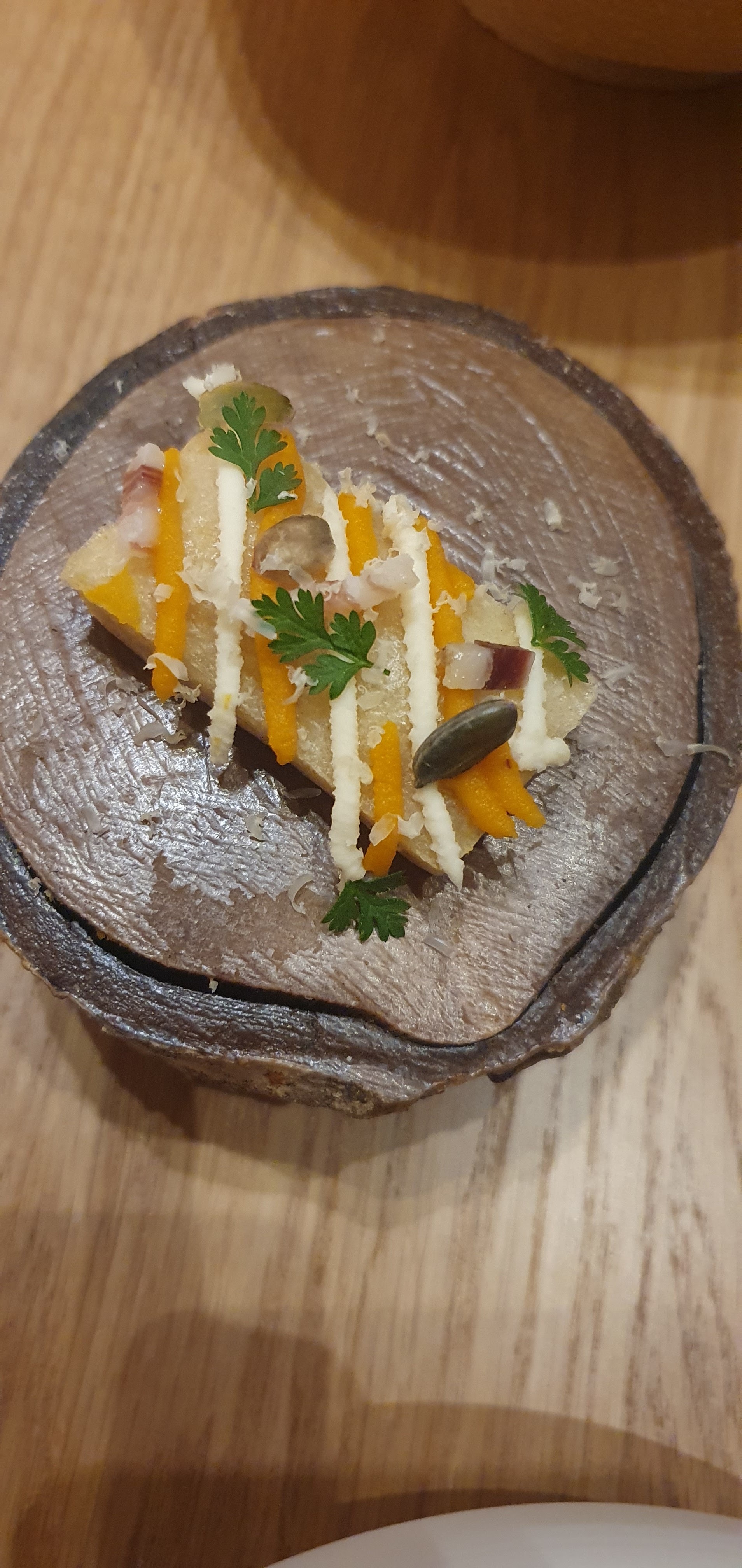 Excellent repas, tant niveau préparation des plats que d’un point visuel. Établissement très luxueux dans des tons de beige (mobilier en bois, fauteuils en tissu, plafond très original, vaisselle en grès) jusqu’aux tenues des serveurs en adéquation avec le lieu Accueil très chaleureux du personnel Expérience à renouveler dans ce restaurant