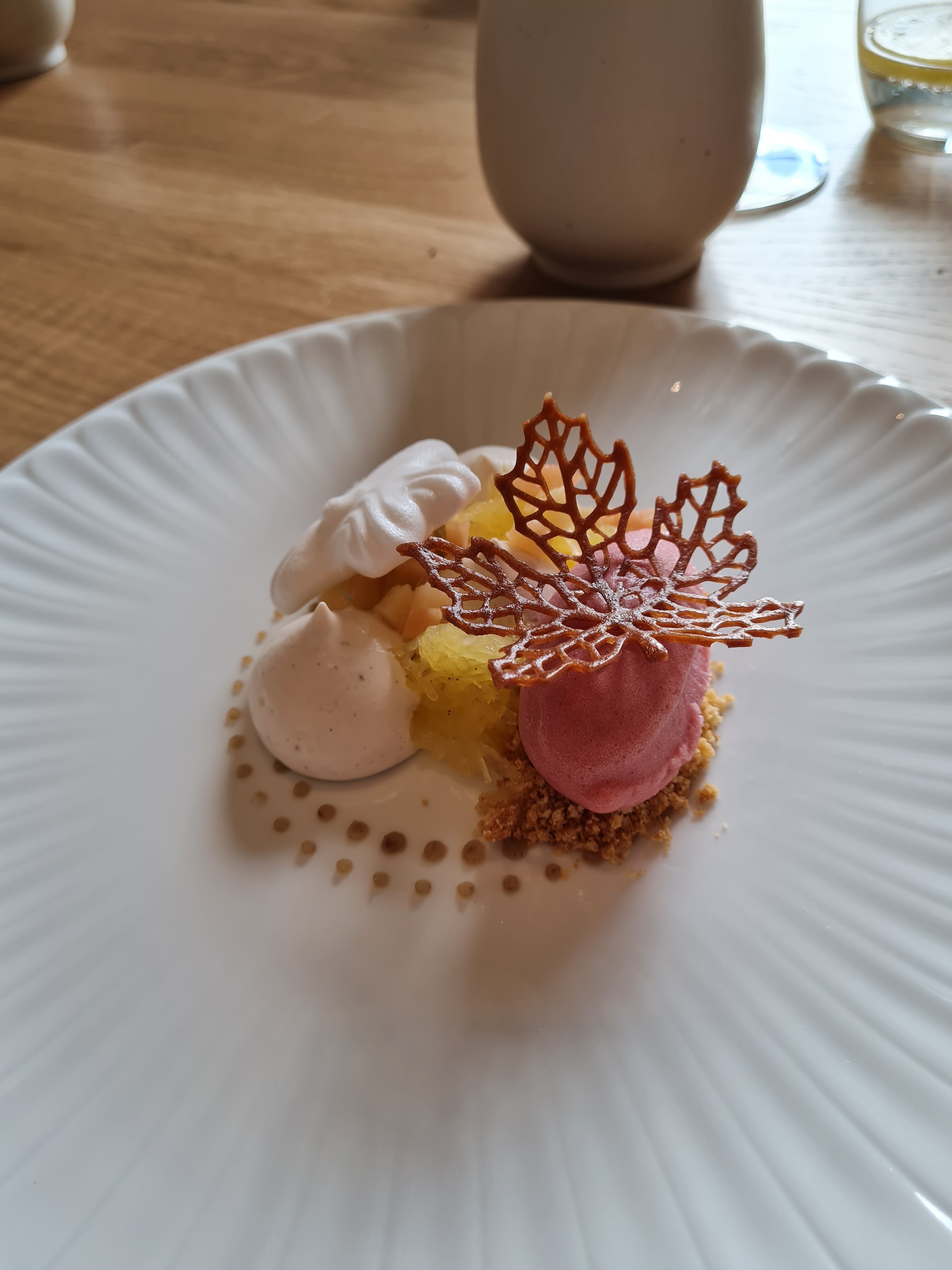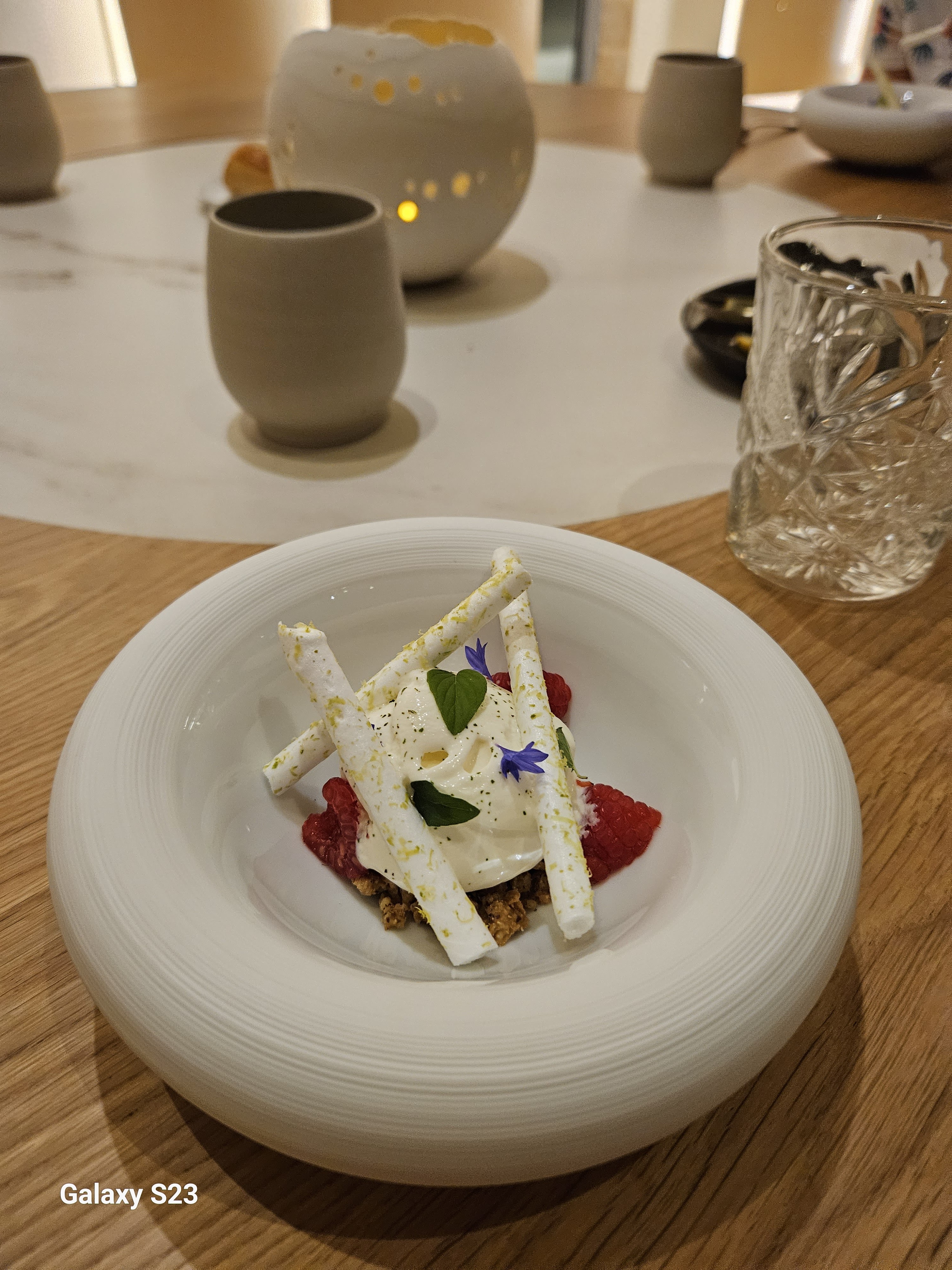 Excellente nourriture et service (formel mais détendu), de loin le meilleur repas de notre voyage. Pas bon marché mais toujours d'un bon rapport qualité-prix. Le chef pâtissier a servi nos desserts en personne avec et explication du plat 👍. Une grande partie des produits sont cultivés sur place et sont ultra frais. Vraiment splendide !