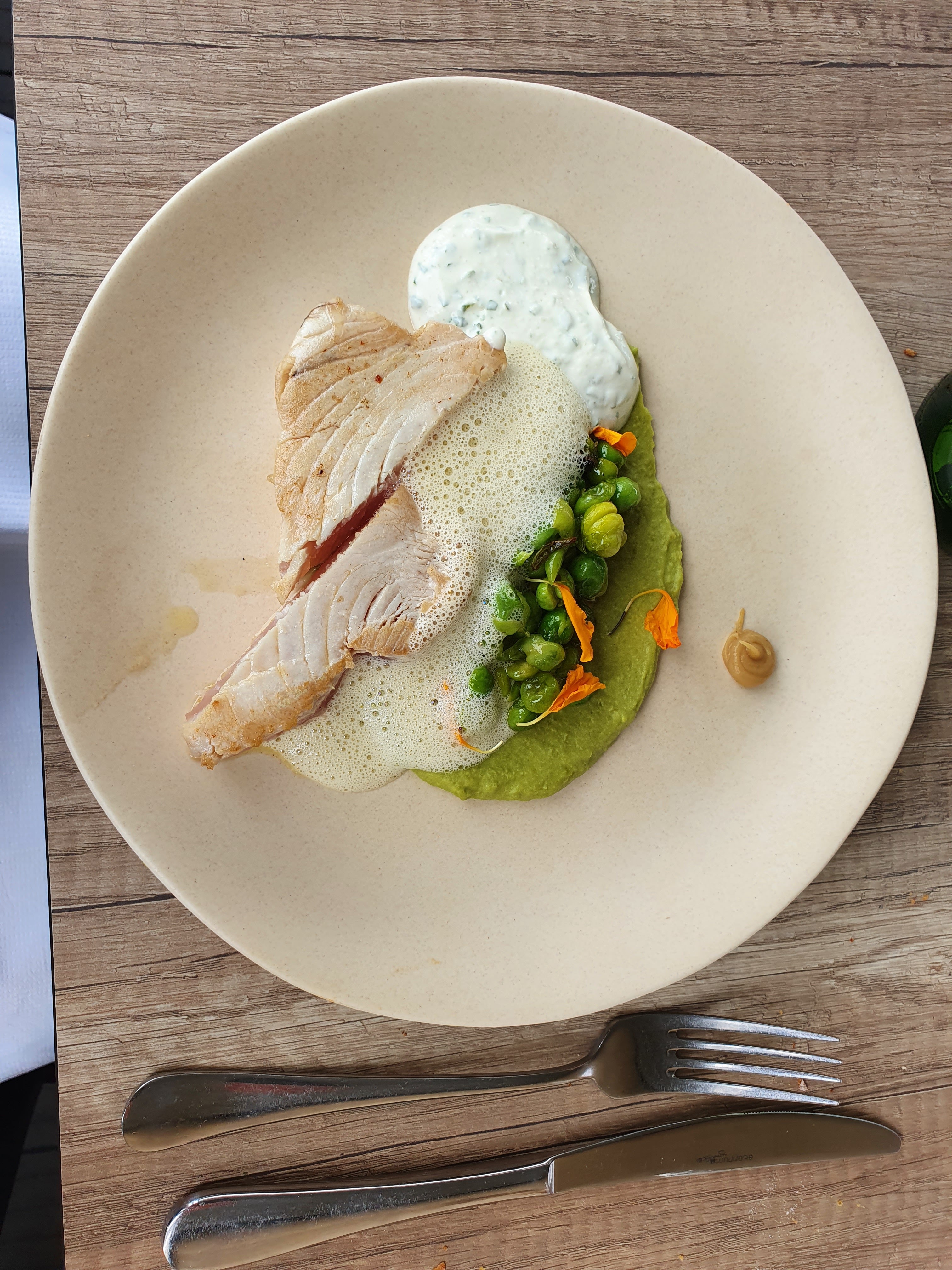 Très bon moment dans ce restaurant charmant avec une grande terrasse abritée à l'arrière. Des saveurs délicieuses et des couleurs harmonieuses, de jolies fleurs dans l'assiette pour apporter une petite note en plus. De l'amuse bouche au dessert tout est parfait, le thon blanc mi cuit est un des meilleurs que j'ai goûté et le vin blanc idéal pour l'accompagner. Nous avons été très bien accueillis et nous reviendrons avec plaisir.