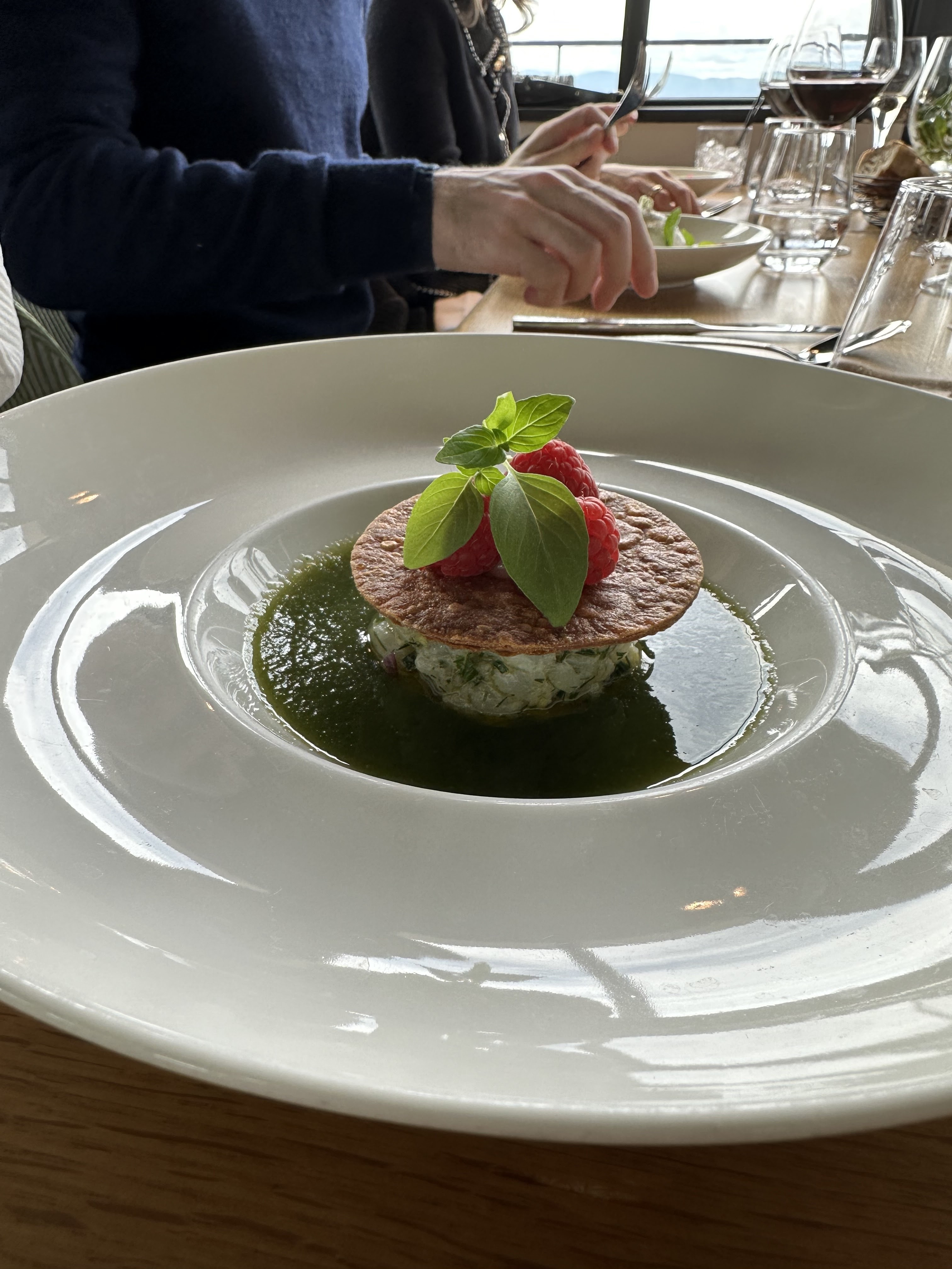 Excellent déjeuner chez Cuisine à manger. Service, présentation des assiettes et expériences culinaires au top ! La vue est normalement superbe mais nous n'avons pas pu en profiter, le temps n'étant malheureusement pas au rdv.