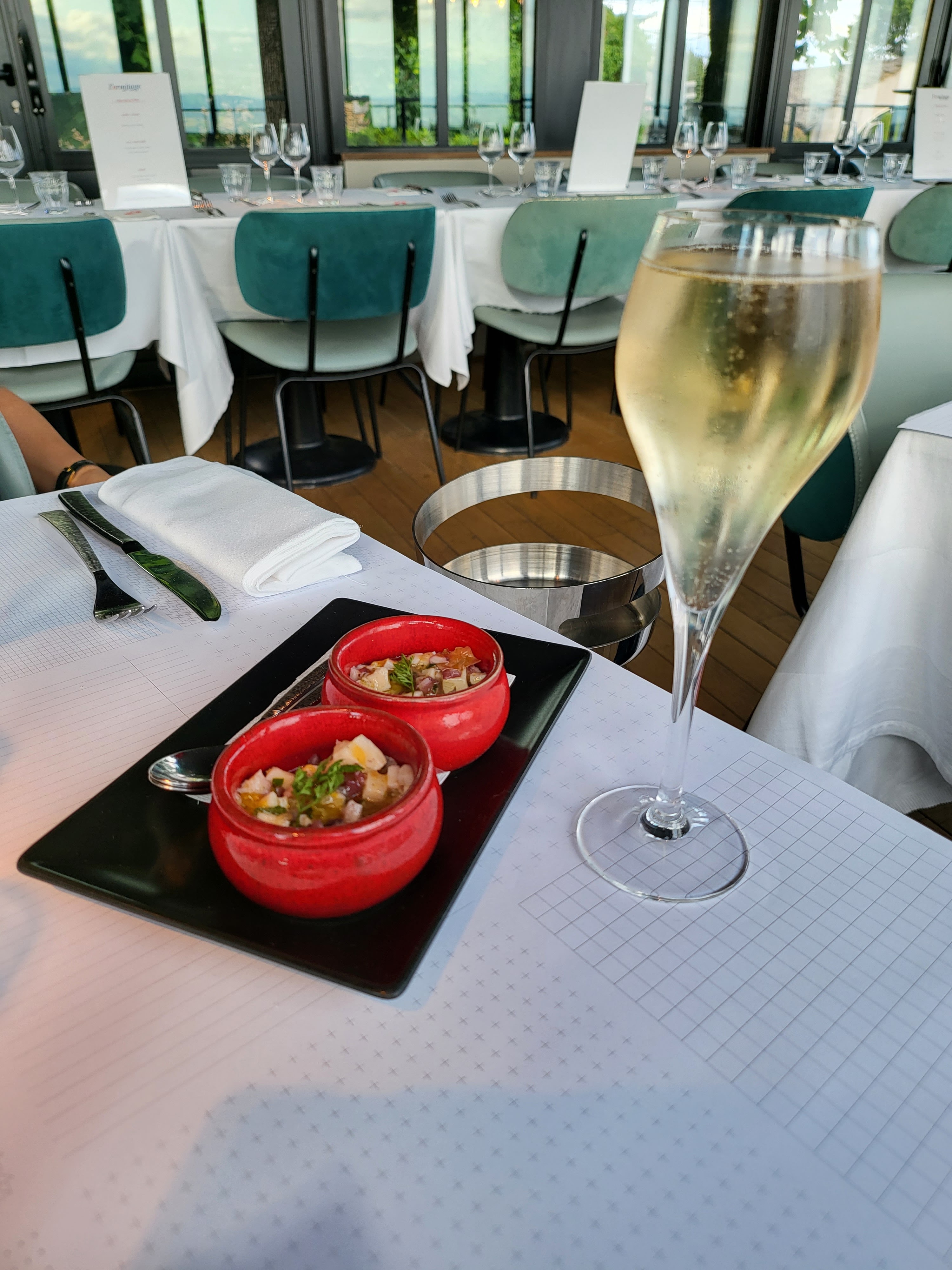 Repas délicieux et raffiné, service de qualité et vue magnifique