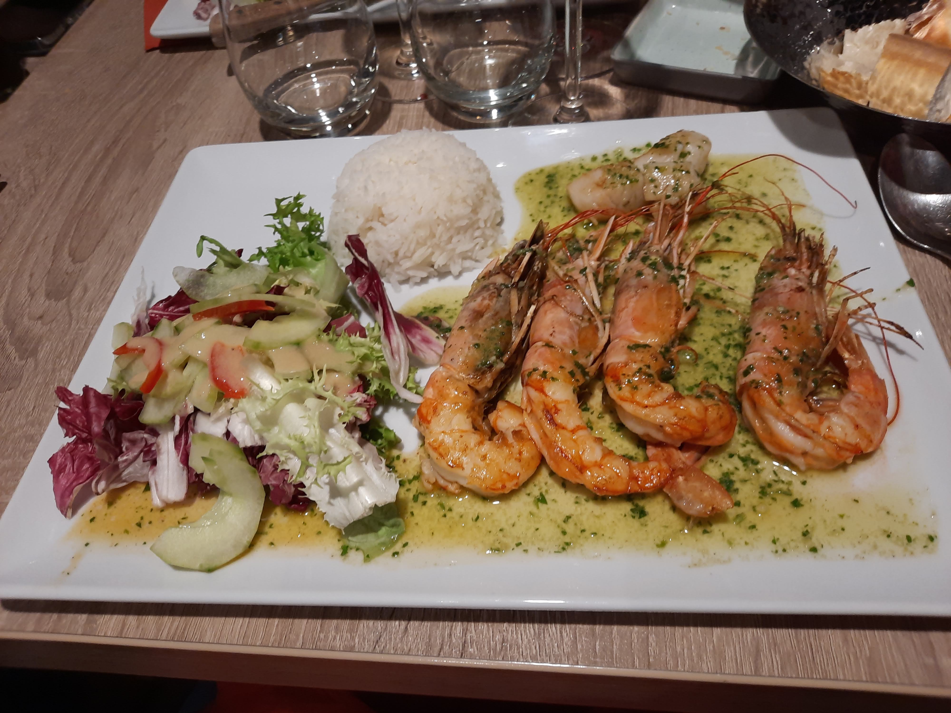 Alors nous y sommes allés quand il neigeait cadre très joli serveur agréable très bien servi dommage que les gambas étaient pas assez cuites limites crues et dans la salle malgré que l'on était a côté du chauffage on était gelé frigorifié dommage ...