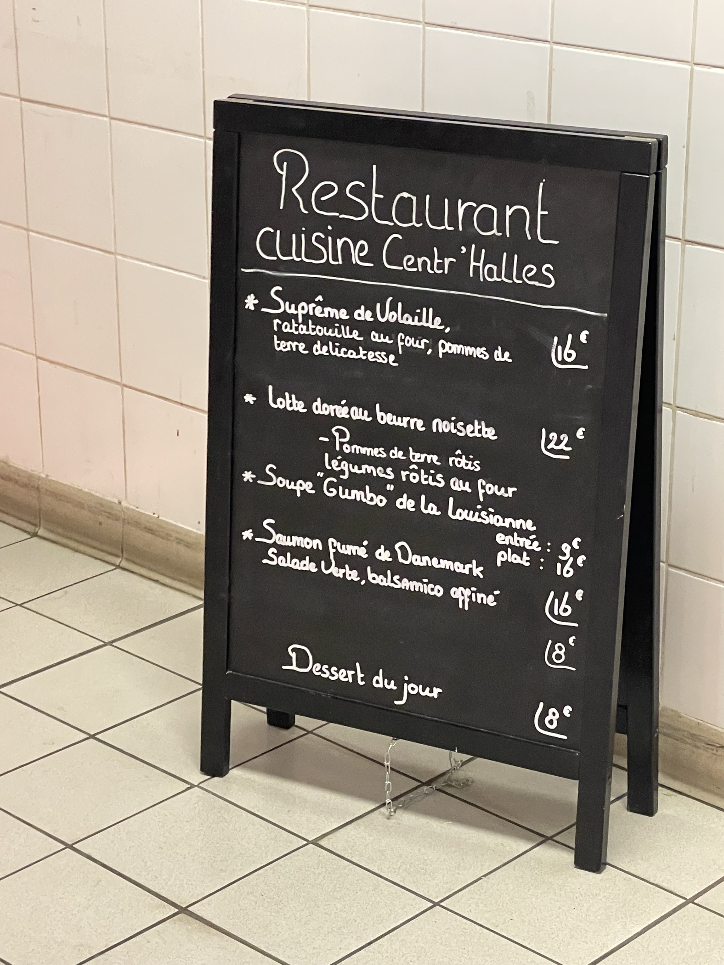 Un petit menu aux halles un dimanche midi. ..très bon et bonne ambiance , c'est un régal de voir le chef préparer ses plats sous nos yeux..soupe gumbo ,foie gras poêlé ,côté de boeuf ...