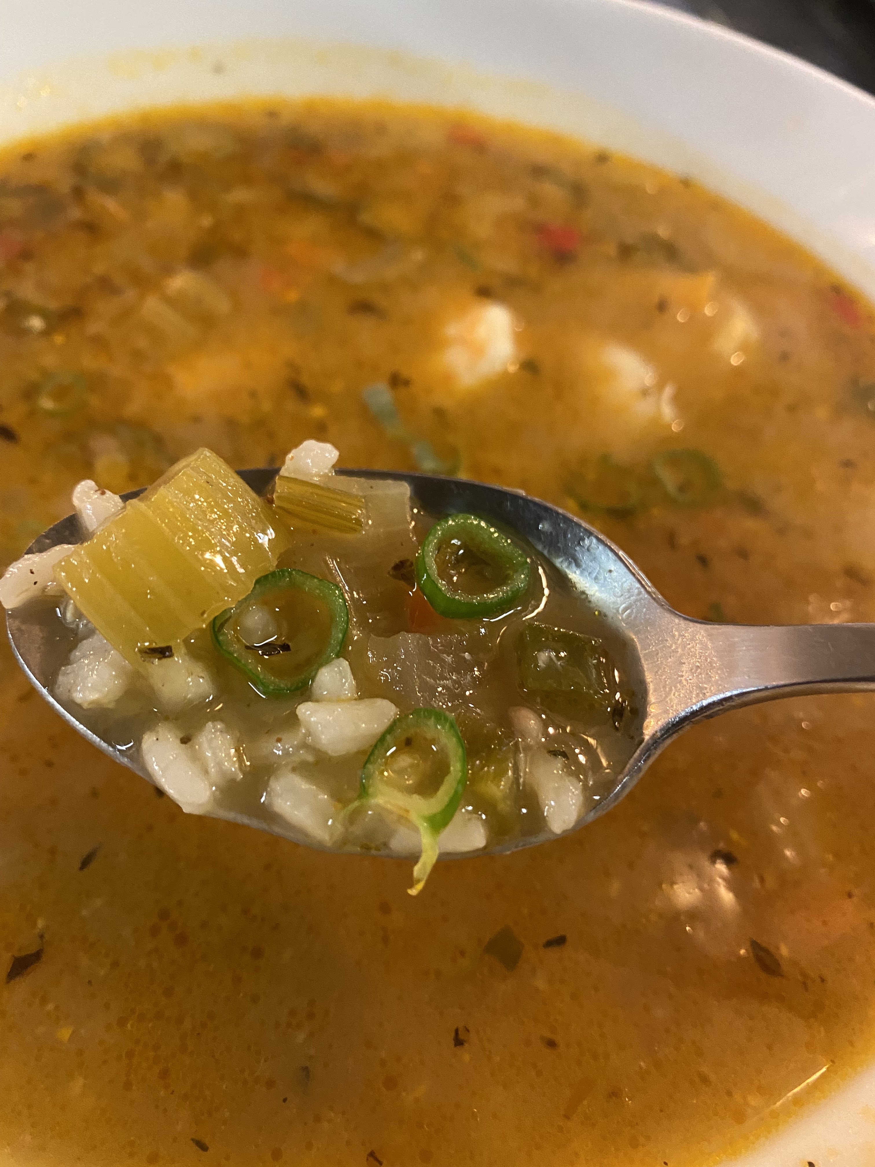Nourriture savoureuse absolue. Le Gumbo de Louisiane. Beaucoup de saveurs. Une très belle surprise aux Halles d'Avignon C'est ma troisième fois ici. C'est tellement savoureux. Merveilleuse dentelle, nourriture fabuleuse.
