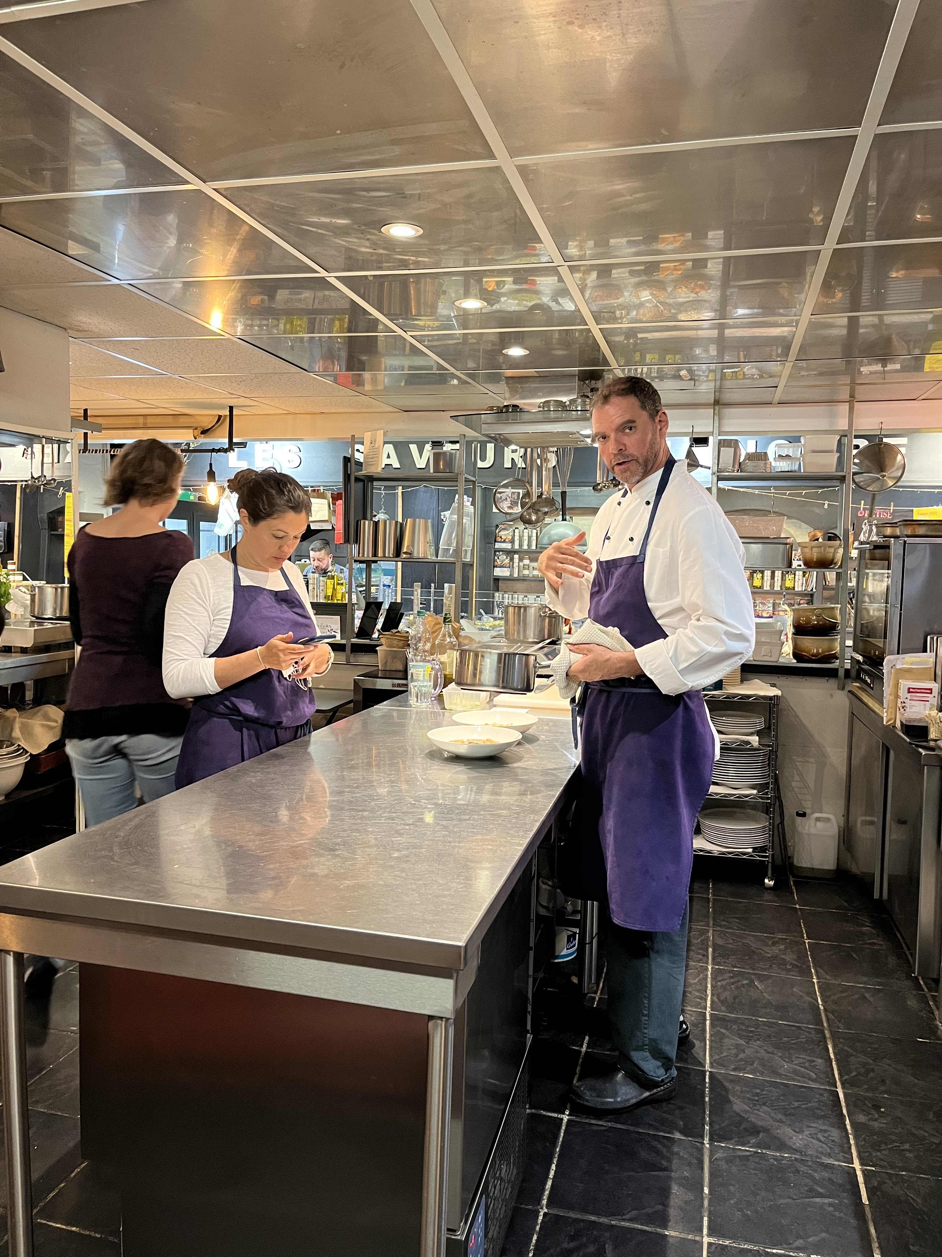 Aujourd'hui, quatre d'entre nous ont suivi le cours de cuisine Cuisine Centr'Halles... c'était un vrai délice. Faire du shopping au marché était très amusant, le cours était éducatif et très agréable et la nourriture était délicieuse. Le chef, John, fait un travail formidable, rendant l'expérience inoubliable.
