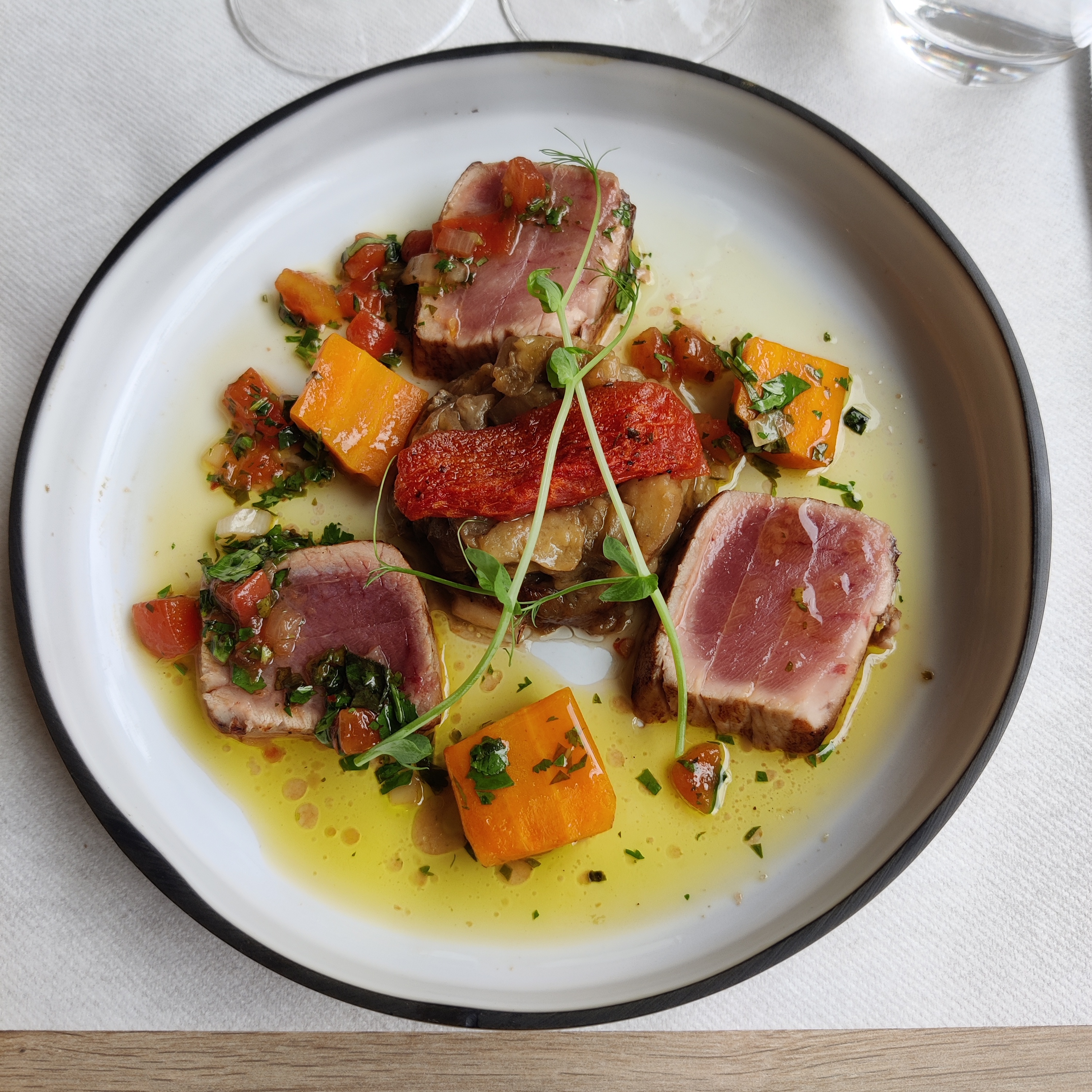 rien à redire cuisine digne d un chef avec d excellents produits...raffiné. .sérieux..un très bon moment. .nous y reviendrons avec plaisir