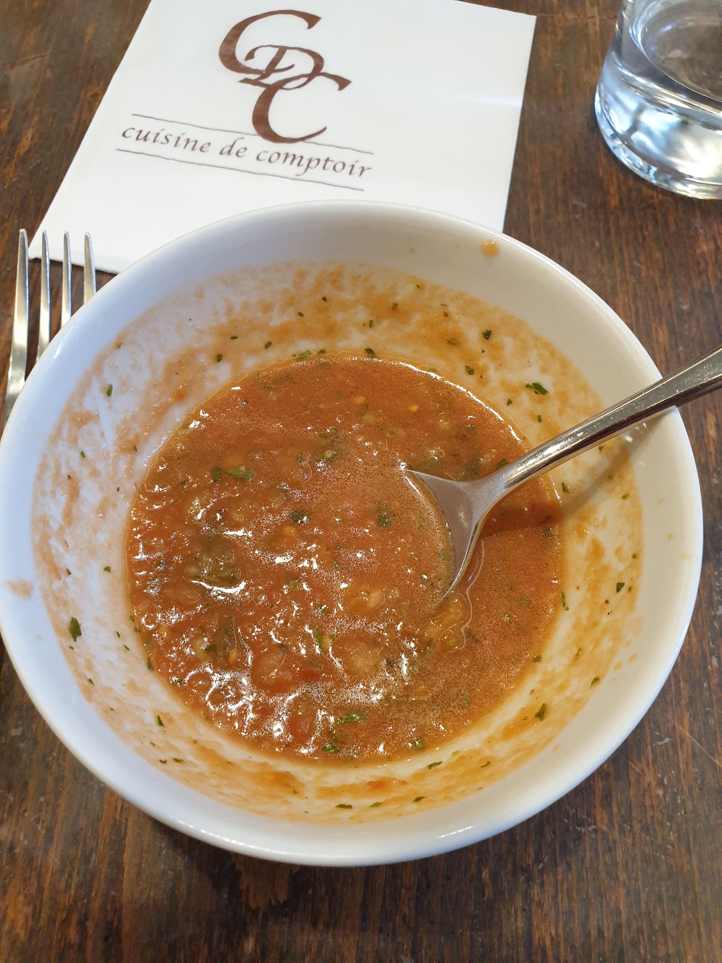 Menu simple et efficace, la tartine Seguin très bonne et le Gaspacho à la tomate et à la menthe, très frais... excellent ! Très bon accueil et un service très agréable...ne changez rien!