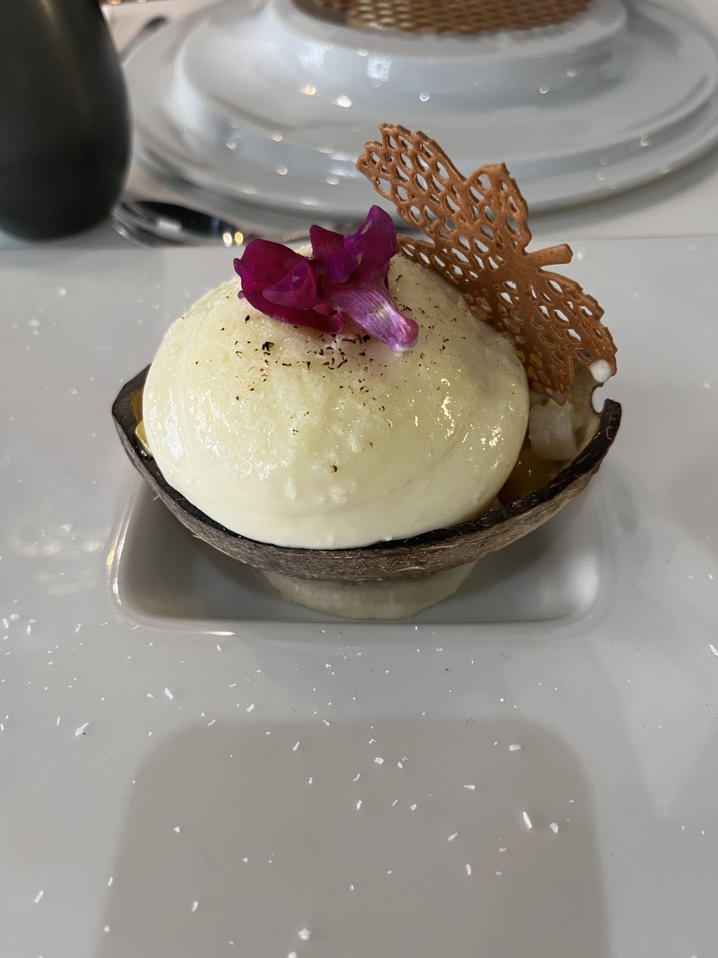 Excellent restaurant, nous avions opter pour le menu signature du chef à 59€ par personnes, ce menu comporter deux entrées, un plat et un dessert. N’hésitez pas à accompagner votre plat d’un virgin colada, pas encore présent dans leur carte, pour les fans de coco et ananas.