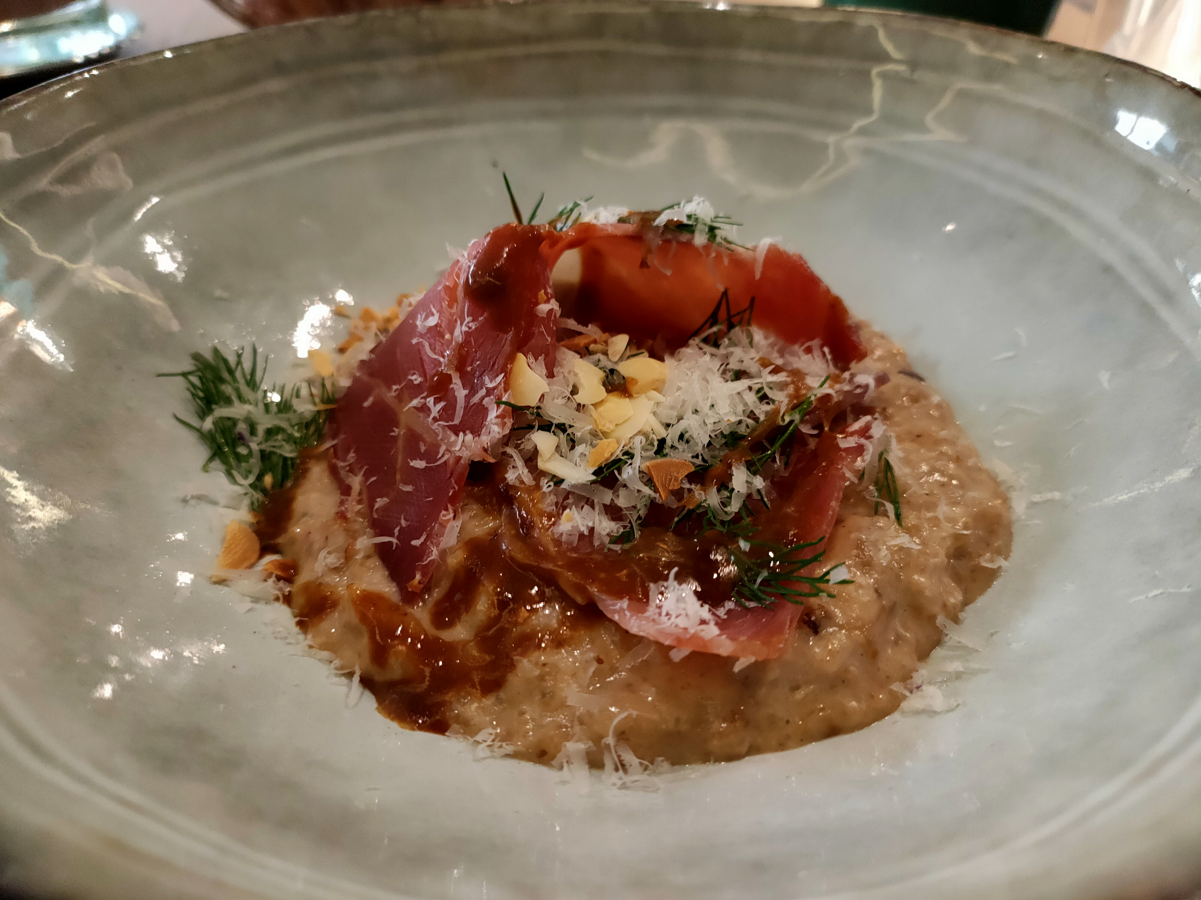 Ce restaurant a plusieurs vies et chacune semble l'amener plus loin dans sa relation entre la cuisine, l'esthétique et le goût Dans sa vie actuelle, et malgré un contexte complexe, l'expérience culinaire est restée au même niveau de finesse, de subtilité et d'originalité sans jamais tomber dans la facilité. Et j'en veux pour preuve cet excellent risotto, délicatement relevé au chorizo, servie en entrée, et qui par sa balance subtile me semble pouvoir s'adapter aussi bien aux palais délicats qu'aux amateurs d'épices. Je retiens également la mousse de gorgonzola surprenante par sa force et la texture apportée par ses accompagnements. Enfin le pain perdu prend ici des lettres de noblesse tout en conservant des saveurs qui rappelleront les jours insouciants de la jeunesse. En bref merci 🙏🏽 et bravo👏🏽pour ce déjeuner 👍🏽