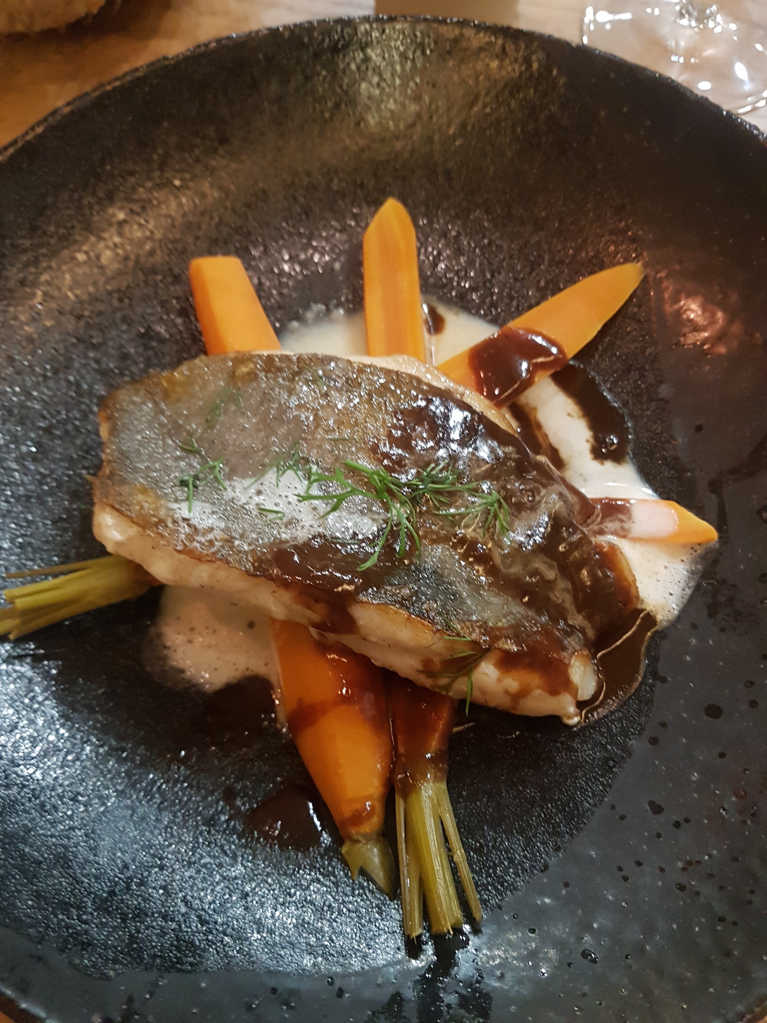 Super expérience culinaire! J'ai pris de la daurade en plat principal. Poisson très doux et excellente garniture de carottes et sauce savoureuse. Le classique désert, le doigt et Dépendances est très mémorable. Absolument délicieux!