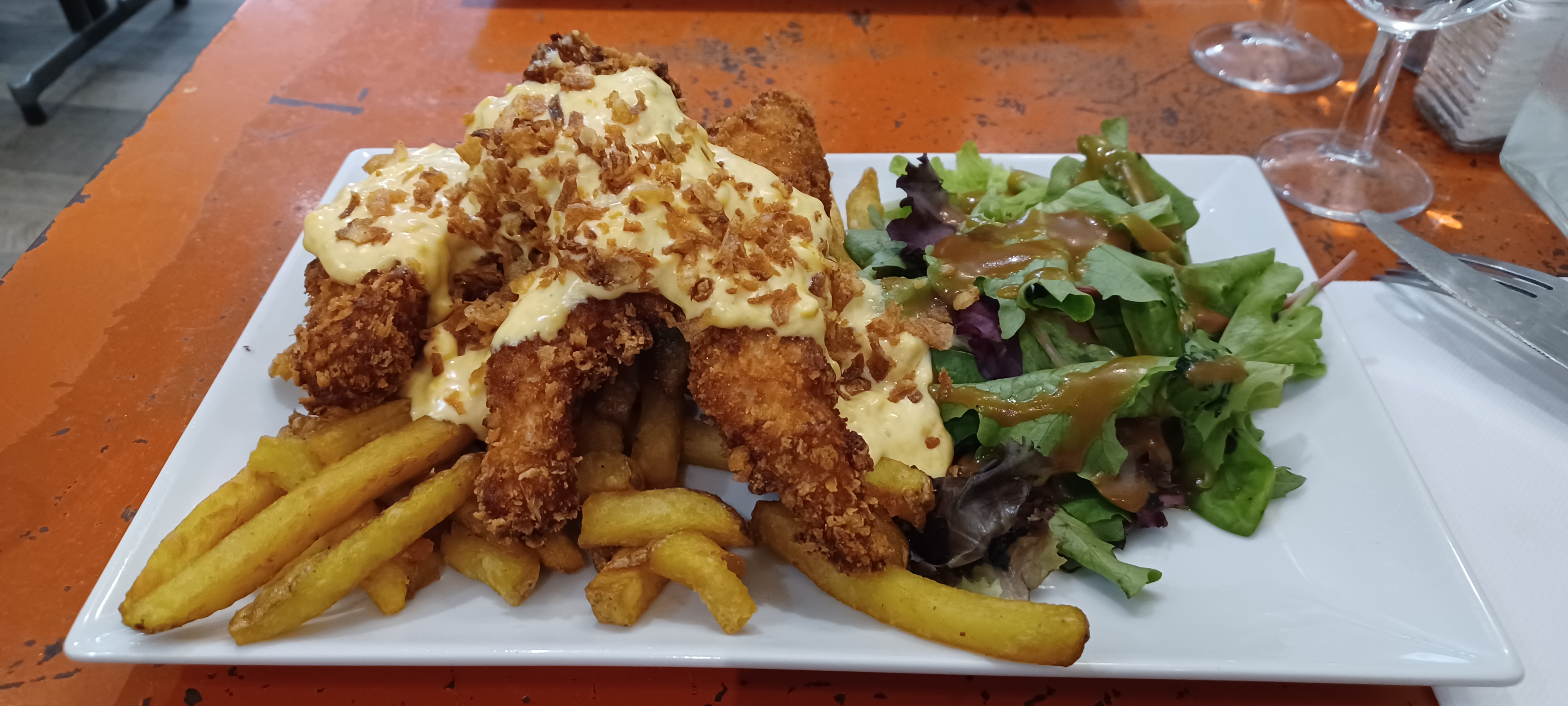 De vrais blancs de poulet panés dans le menu enfant et un excellent burger maison avec des portions de frites très généreuses. Un régal ! La prochaine fois on essaiera la très belle formule poulet rôti à 40€ pour 4 avec desserts et bouteille de vin inclus.
