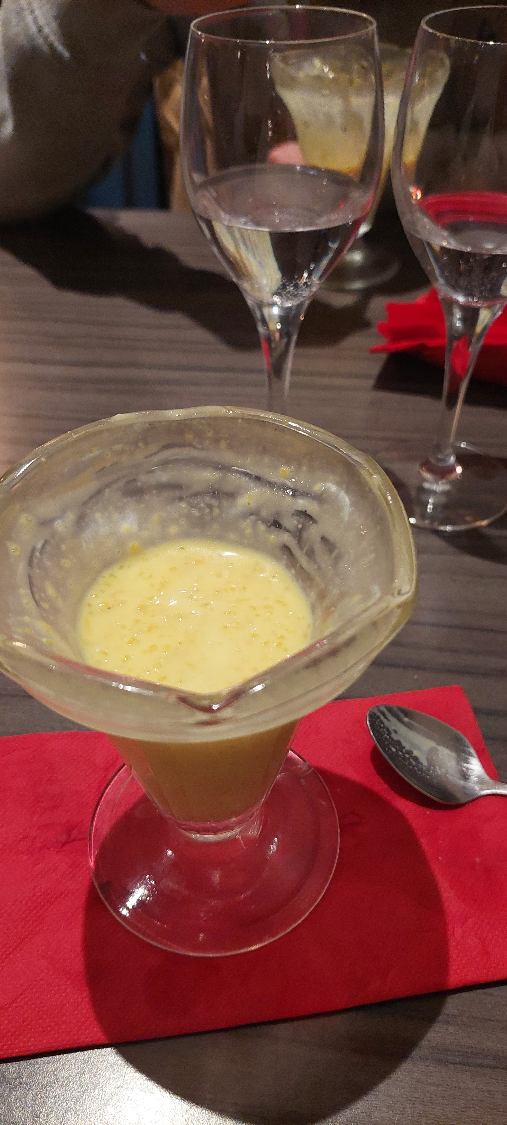 Très belle expérience, le repas était délicieux, entrée plat dessert 21.90€ Très copieux. Petit bémol : Reçu par une personne qui nous à dit pour deux personnes ? Préparez vos pass sanitaires Je trouve qu'il faut être un peu moins direct pour laissez ce moment festif et moins protocolaire pour une première phrase 😊