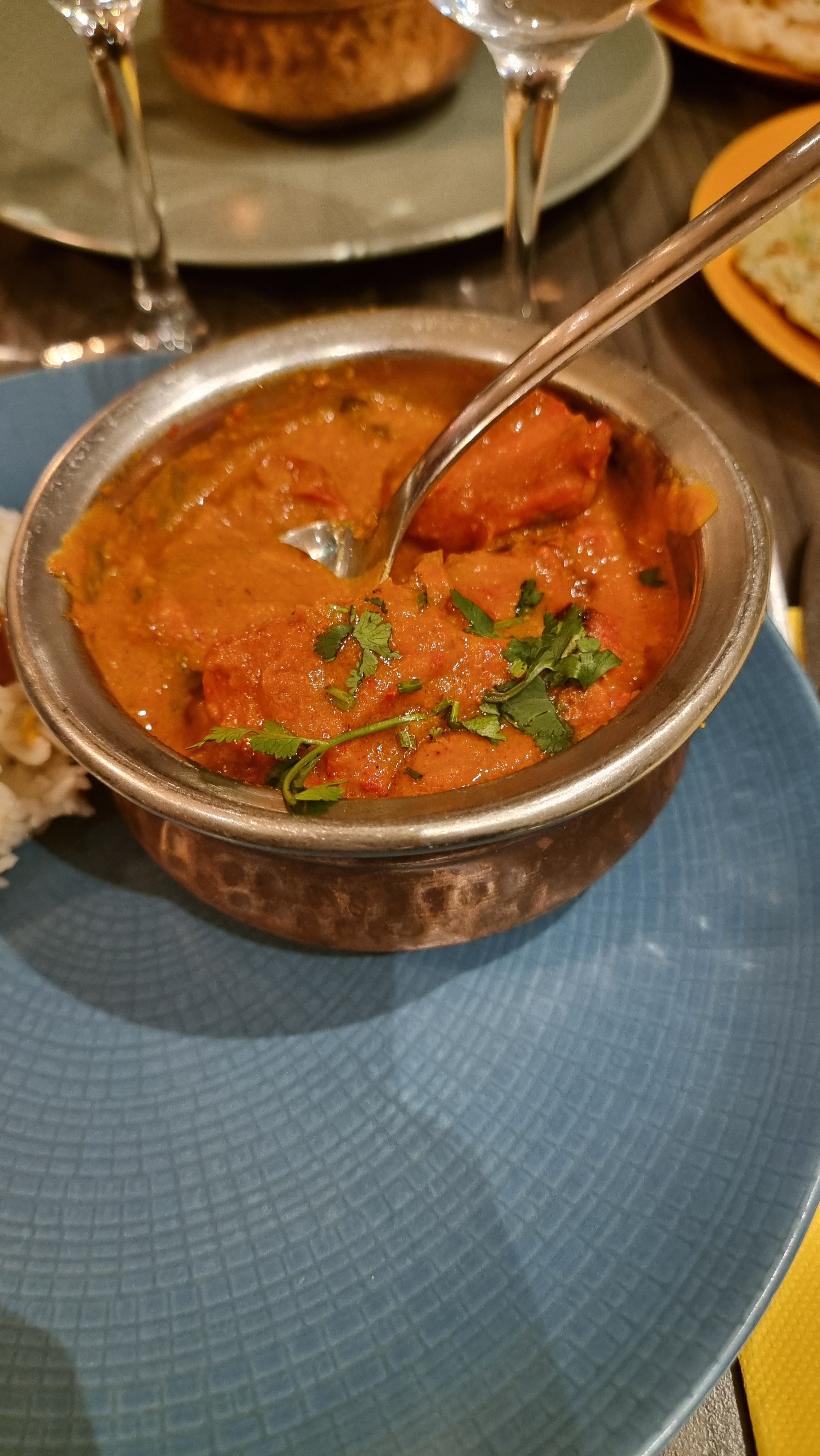 Délicieux ! Découverte de la cuisine indienne, de toutes ces épices. Le poulet, les viandes les sauces étaient parfaitement parfumées, un régal ! Personnel au top :) On nous a même proposé de ramener ce que nous n’avions pas fini. Je recommande à 100%