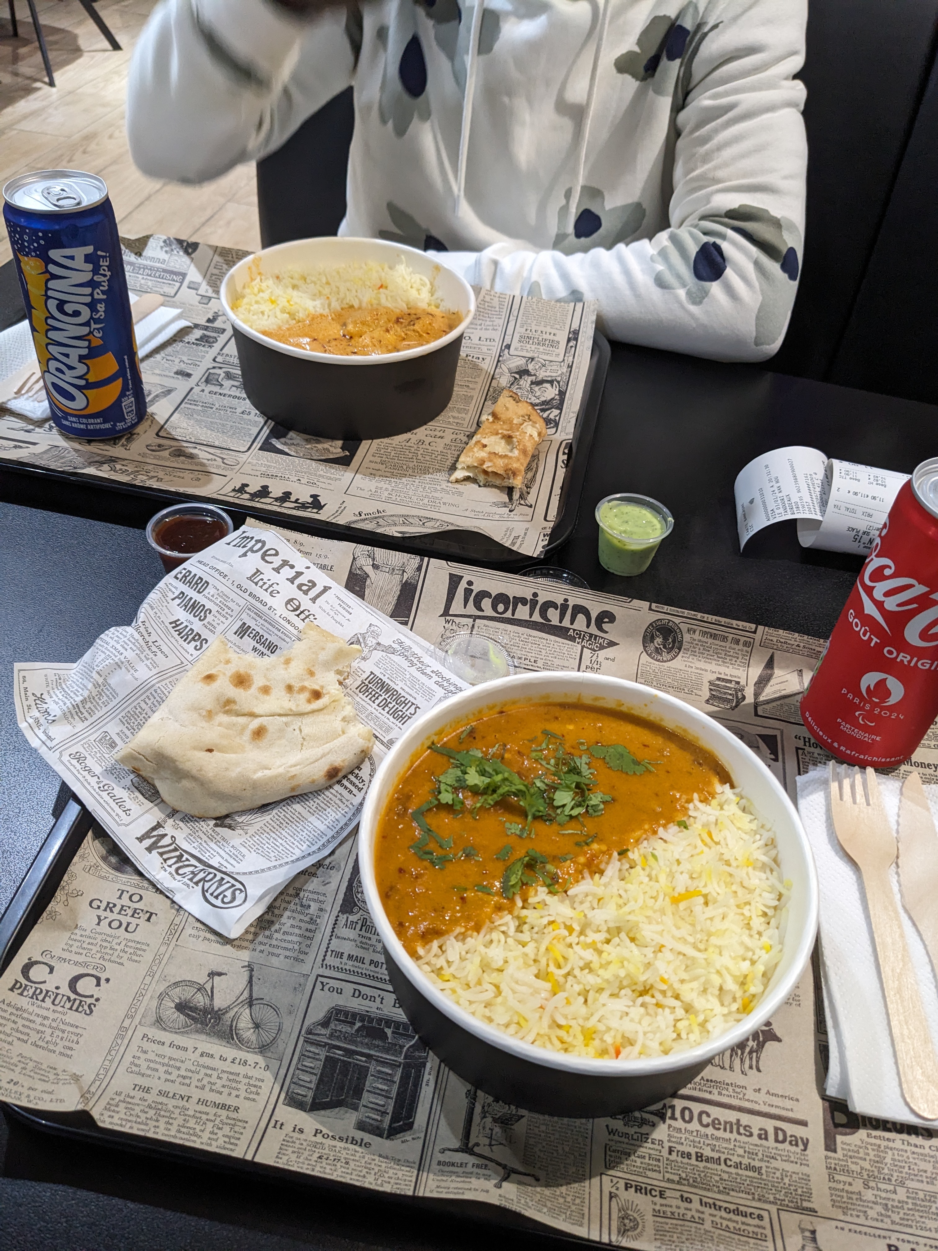 Le patron est très sympathique, la nourriture est bonne et il y a du choix. Les bornes à l'entrée sont pratiques et la nouvelle déco jolie. J'ai pris un butter chicken, au top.
