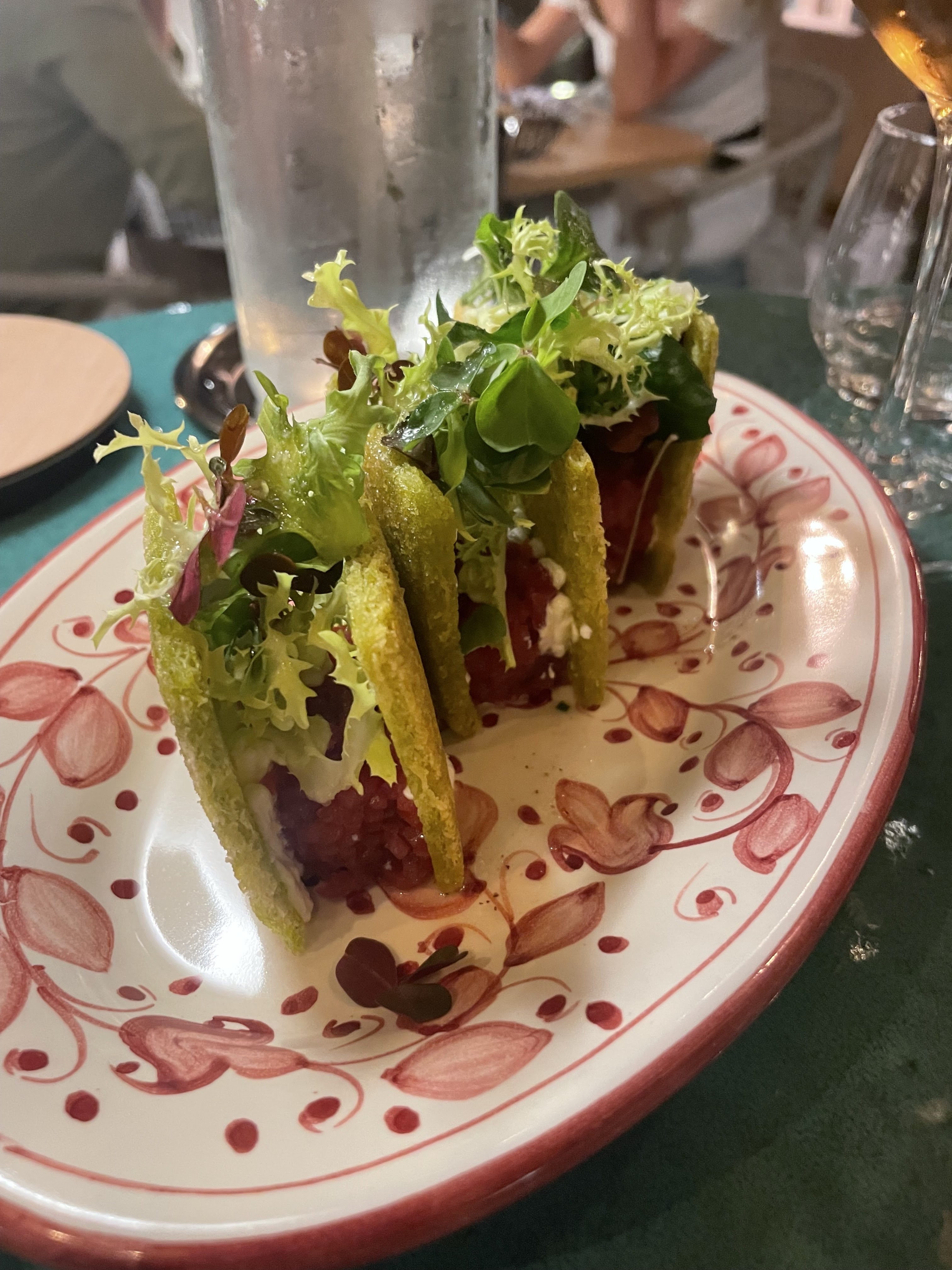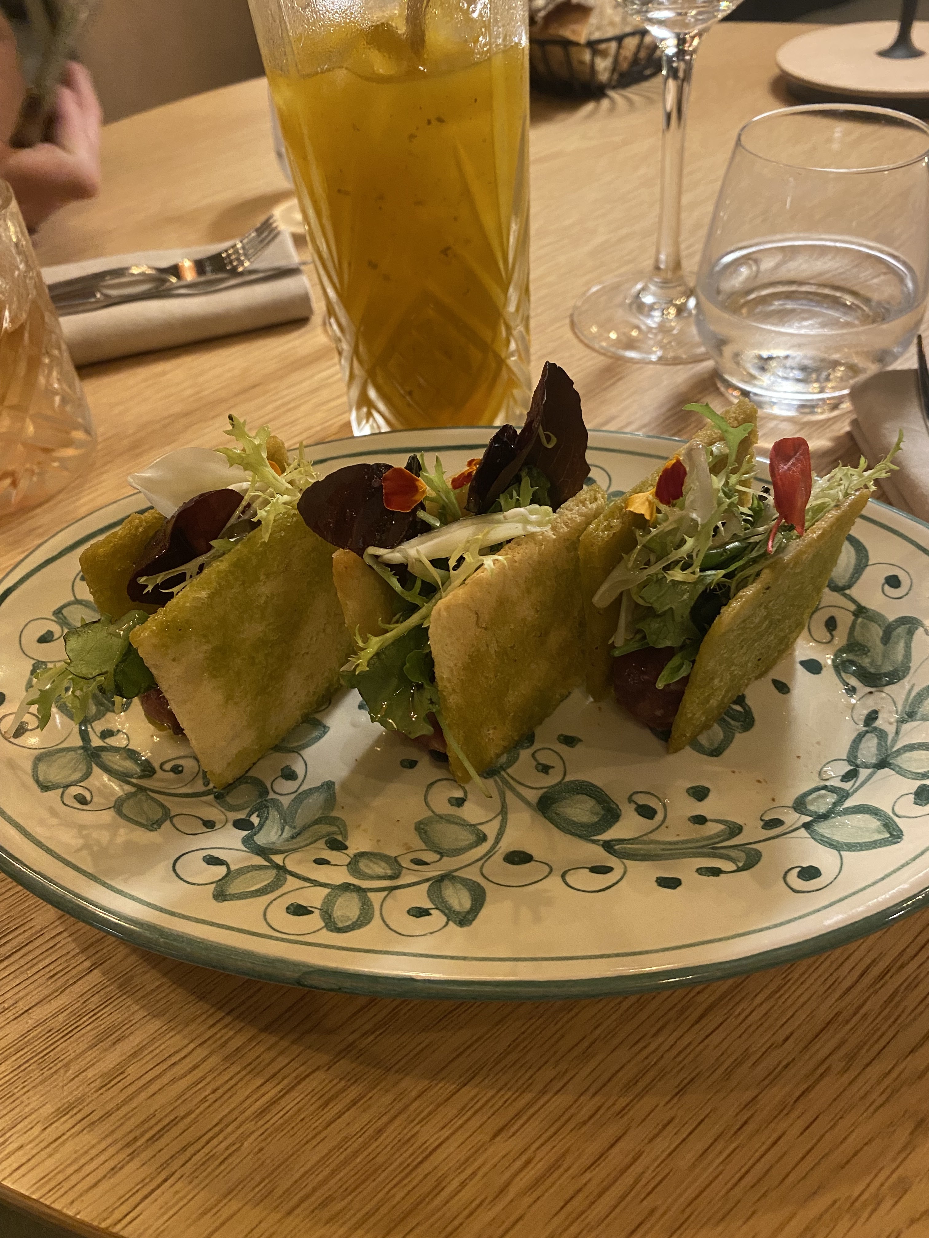 Ce n’est que du plaisir ! Tout est bien ! La cuisine italienne au top de sa forme !les ceviche sont originaux , la focaccia sublime et les spaghettis…extras Une mention spéciale pour le spritz maison Et pour le service Voilà la table dont on rêve pour le lendemain! Bravo