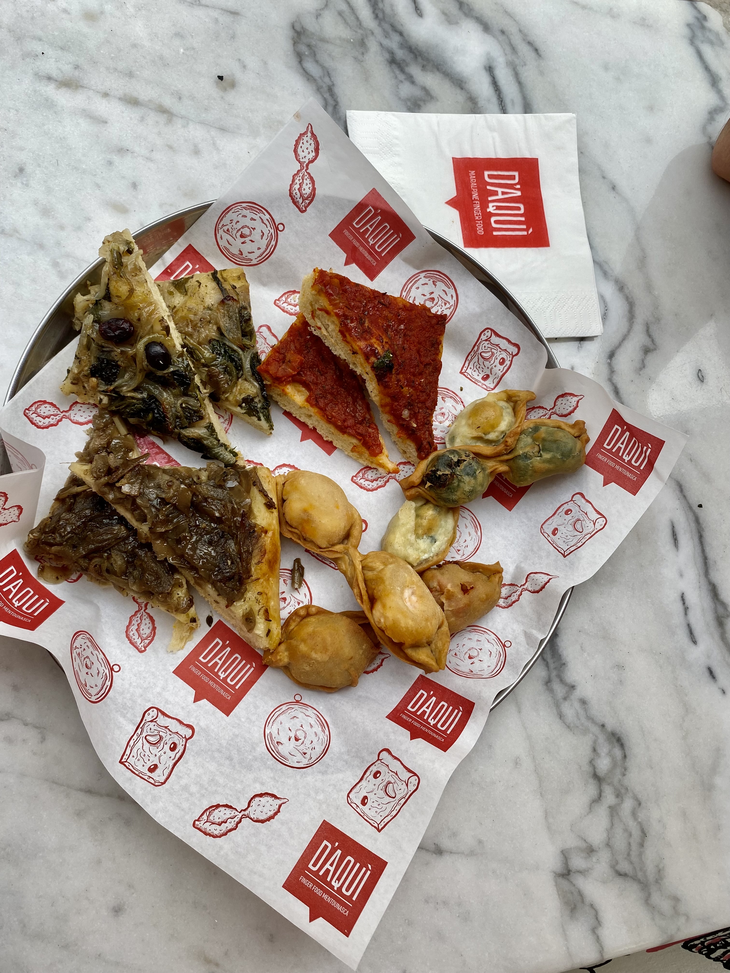 Au cœur de rue cassini une adresse incontournable: D’AQUI ! Qui veut dire d’ici . J’ai goûté des spécialités Mentonnaises comme les barbajuans la socca et les panisses, le tout parfois revisité et juste délicieux !!!