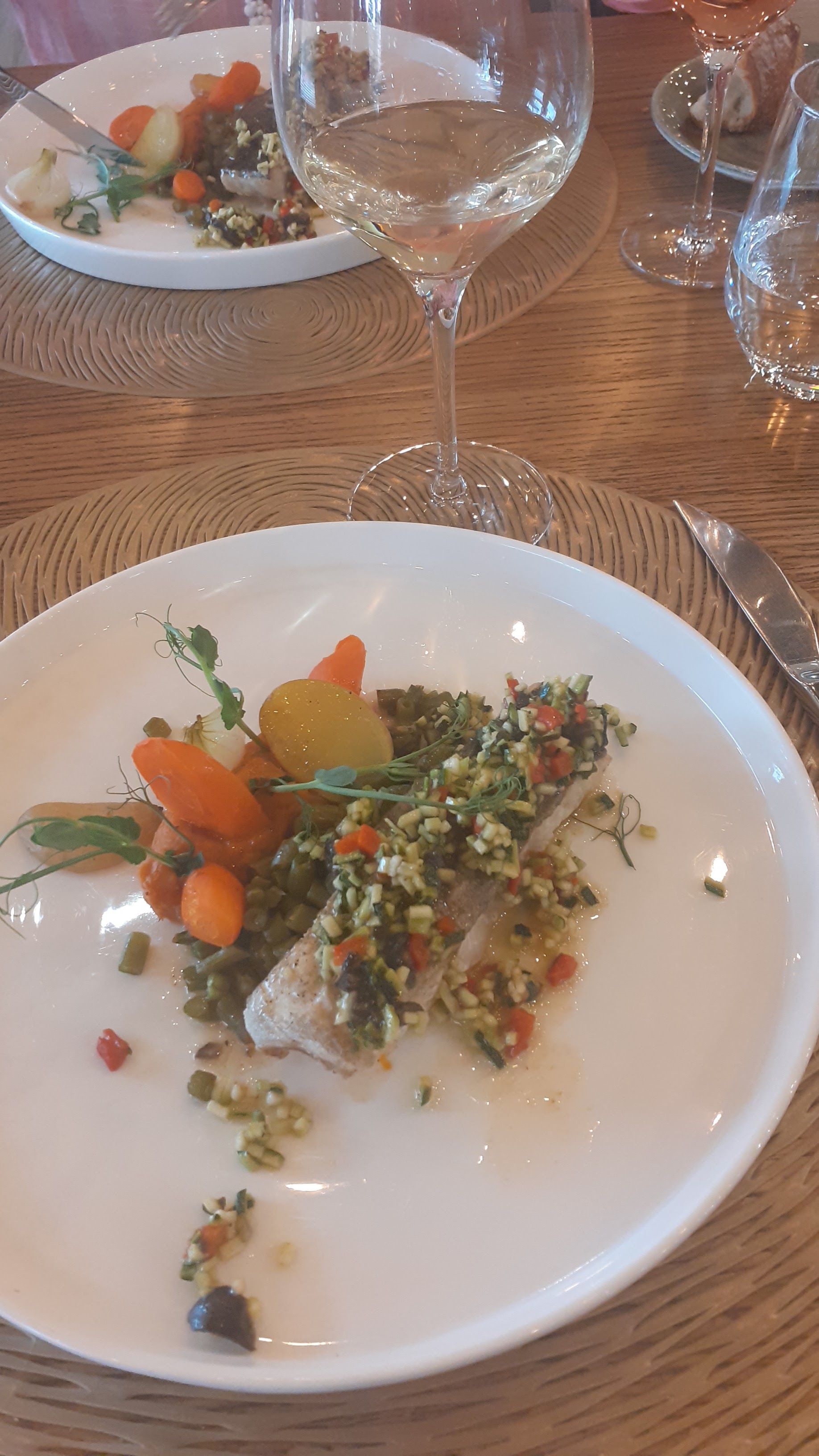 Magnifique repas découverte avec accord mets et vins. Thon, Agneau et foie gras poêlé délicieux. Les vins dégustés en verre opaque étaient d'excellents choix, très aromatique : l'oenologue maison a reçu un prix pour son travail mérité ! Dîner en terrasse en toute sécurité sanitaire