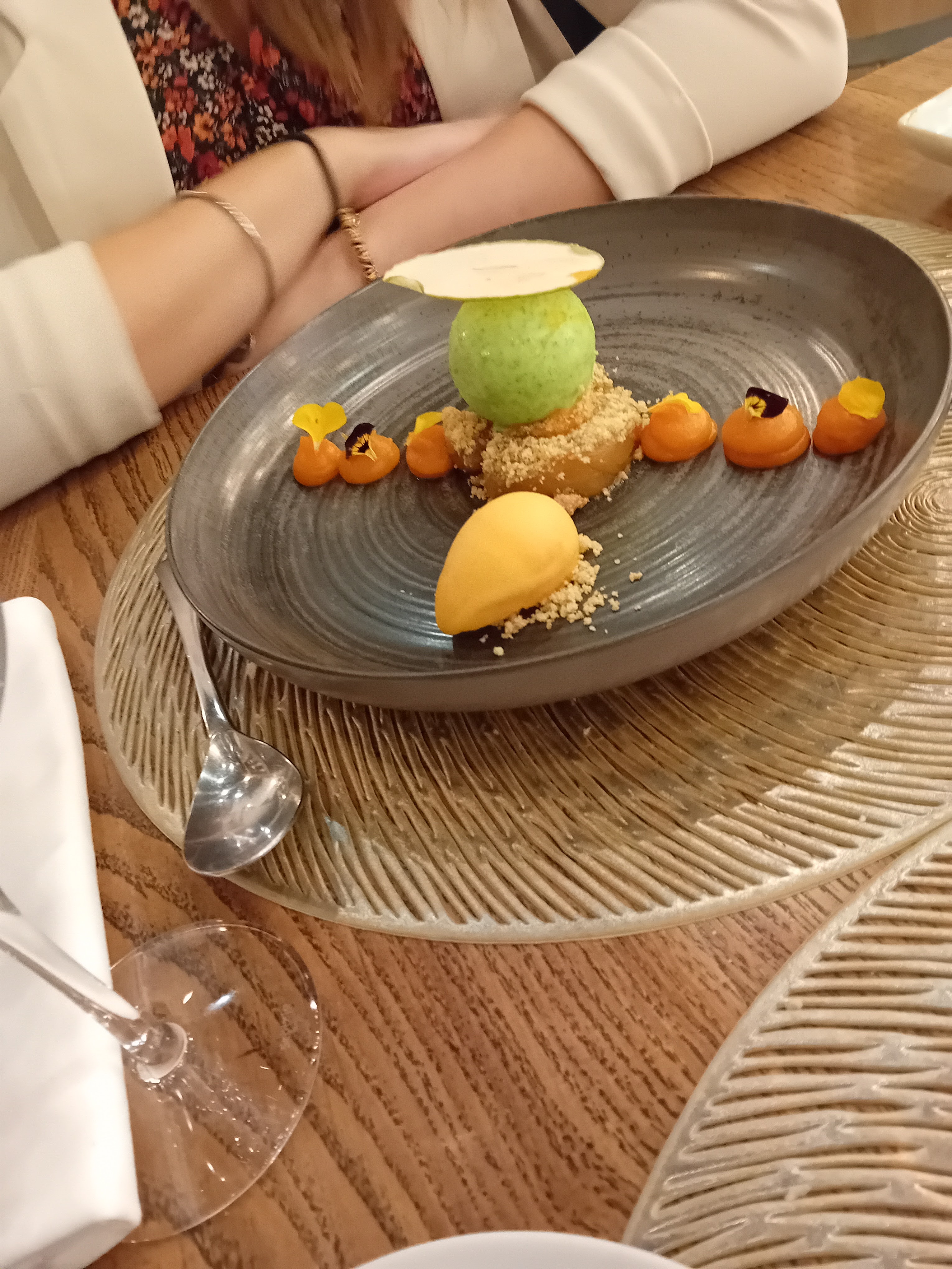 Accueil au top, tout le monde fait de son mieux pour qu'on se sente à l'aise Au niveau du menu, surprenant, parfois ,très bon, plat principal, parfois un peu juste, pour le désert le Baba trop sec malgré la pipette. Septique sur les différents sorbet. Nous avons passé un bon moment, nous recommanderons le restaurant