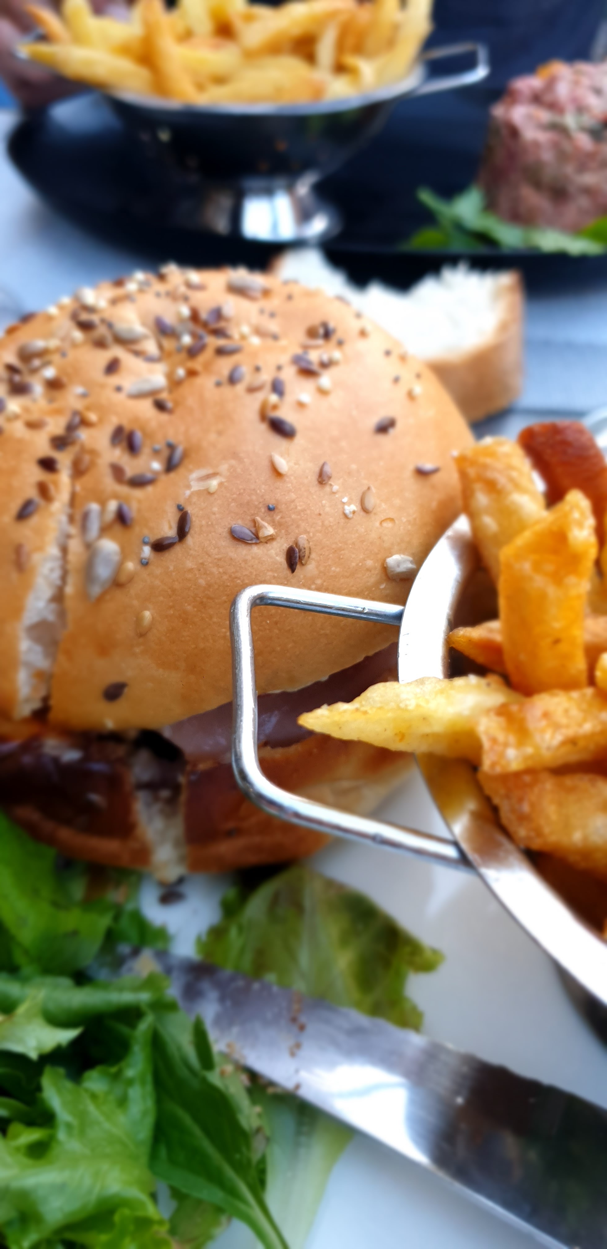 Tres bonne cuisine vraiment !!! Mise apart le serveeuse du 16 Aout 2022 qui je trouve n est pas tres souriante , prends les gens de haut et ne se remets pas en question Nous avons manger tout le repas avec les verres de l apéritif ,pas de verre pour le repas et pas d eau meme en lui demandant e la commande, en milieu de repas et en fin de repas je lui redemande,et là elle me dit que elle etait occupée !!! Meme pas d excuses !! Nous avons trouvé que le repas etait cher 93 euros Mon petit fils a mangé des frites,et a bu une menthe à l 'eau, Mon mari du cochon araignée, 1 verre de vin rouge Ma fille un hamburger avec frites,et 1 aperol et moi faux filet friteset un mojito sans alcool et nous n avons meme pas pris de dessert Franchement ,oui c etait bon mais cher pour se que l on a mangé et la serveuse vraiment hautaine Je n y retournerai pas