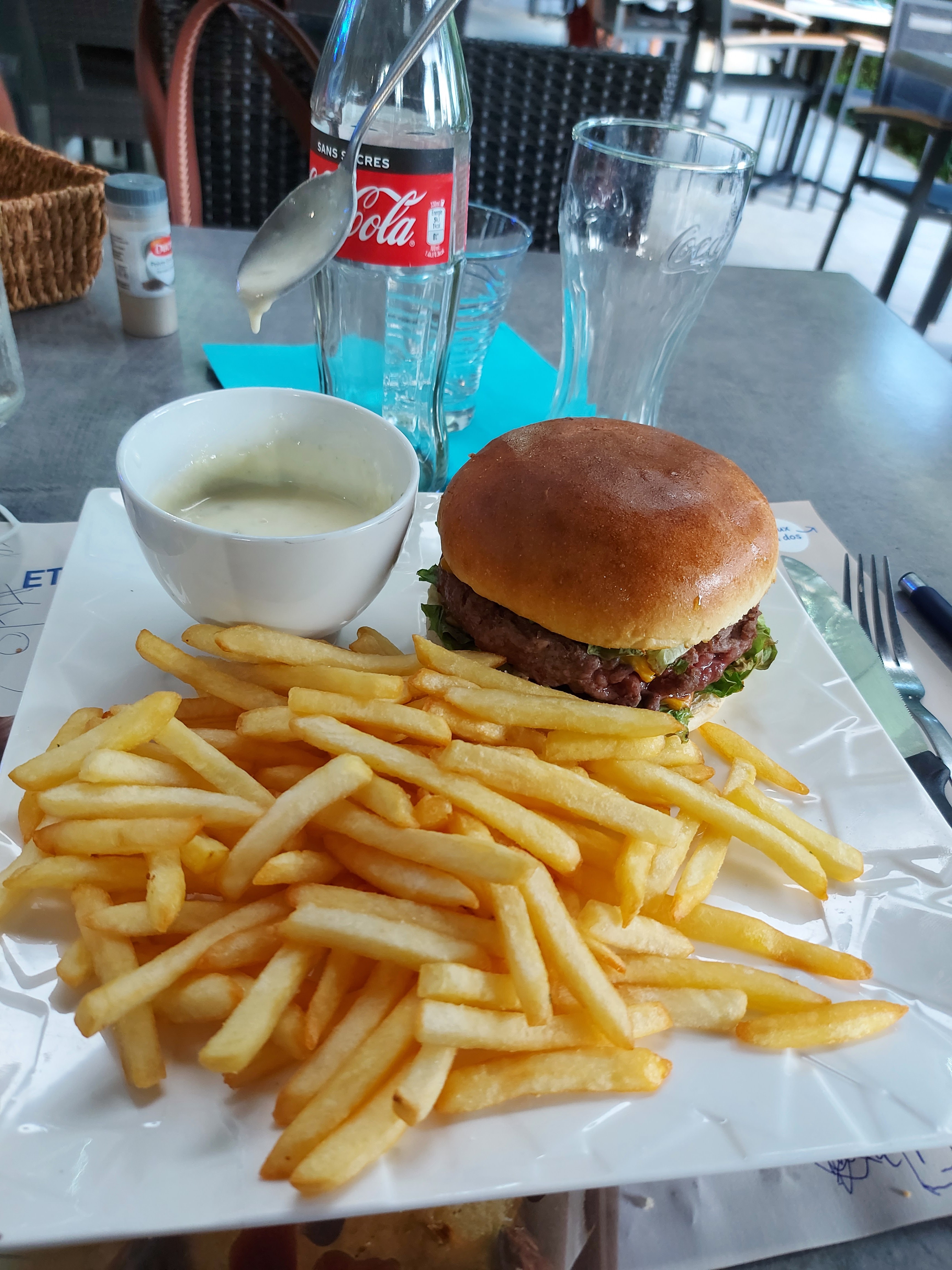 Très bien sauf les frites trop cuites. A voir sinon très agréable.
