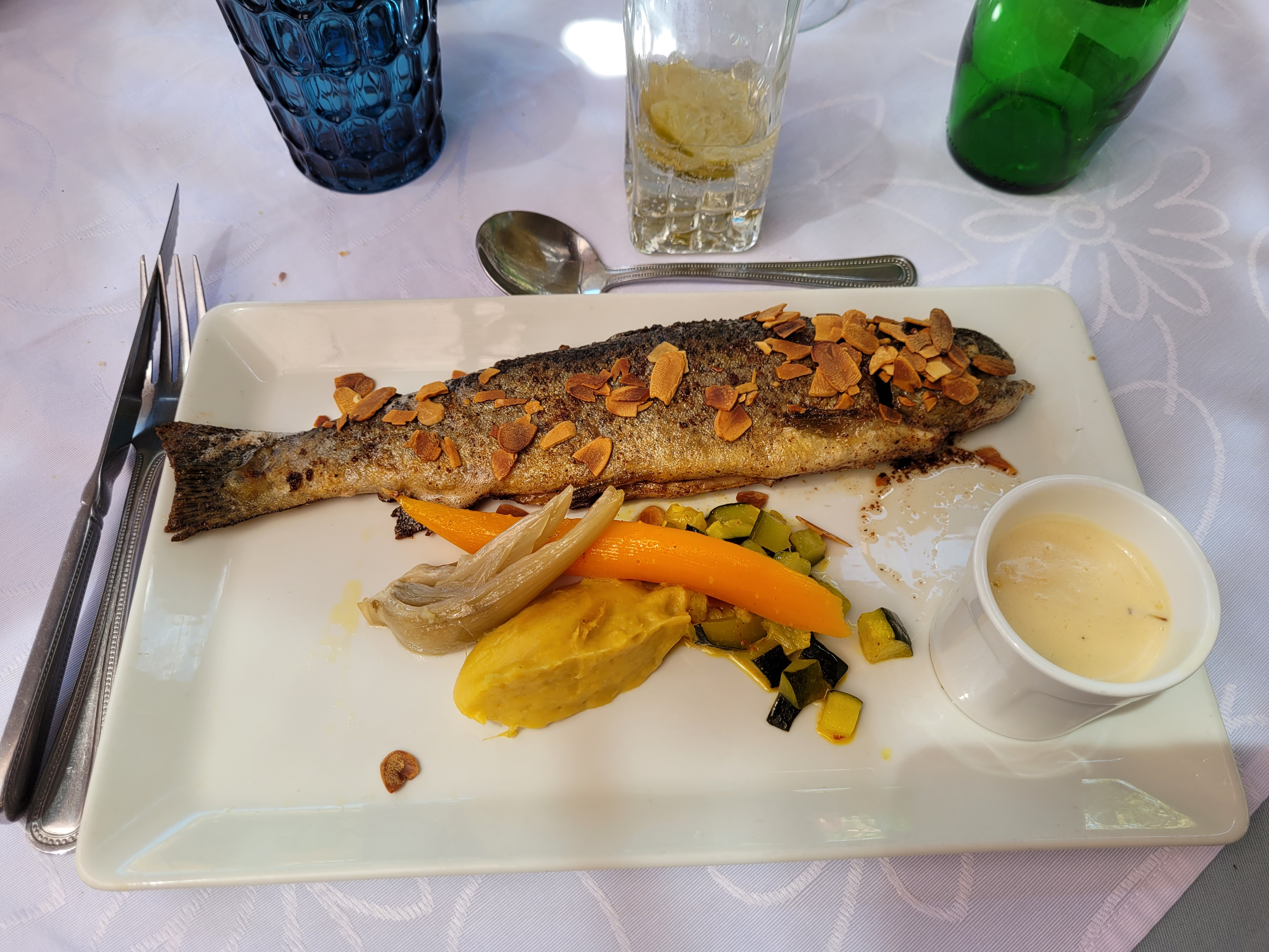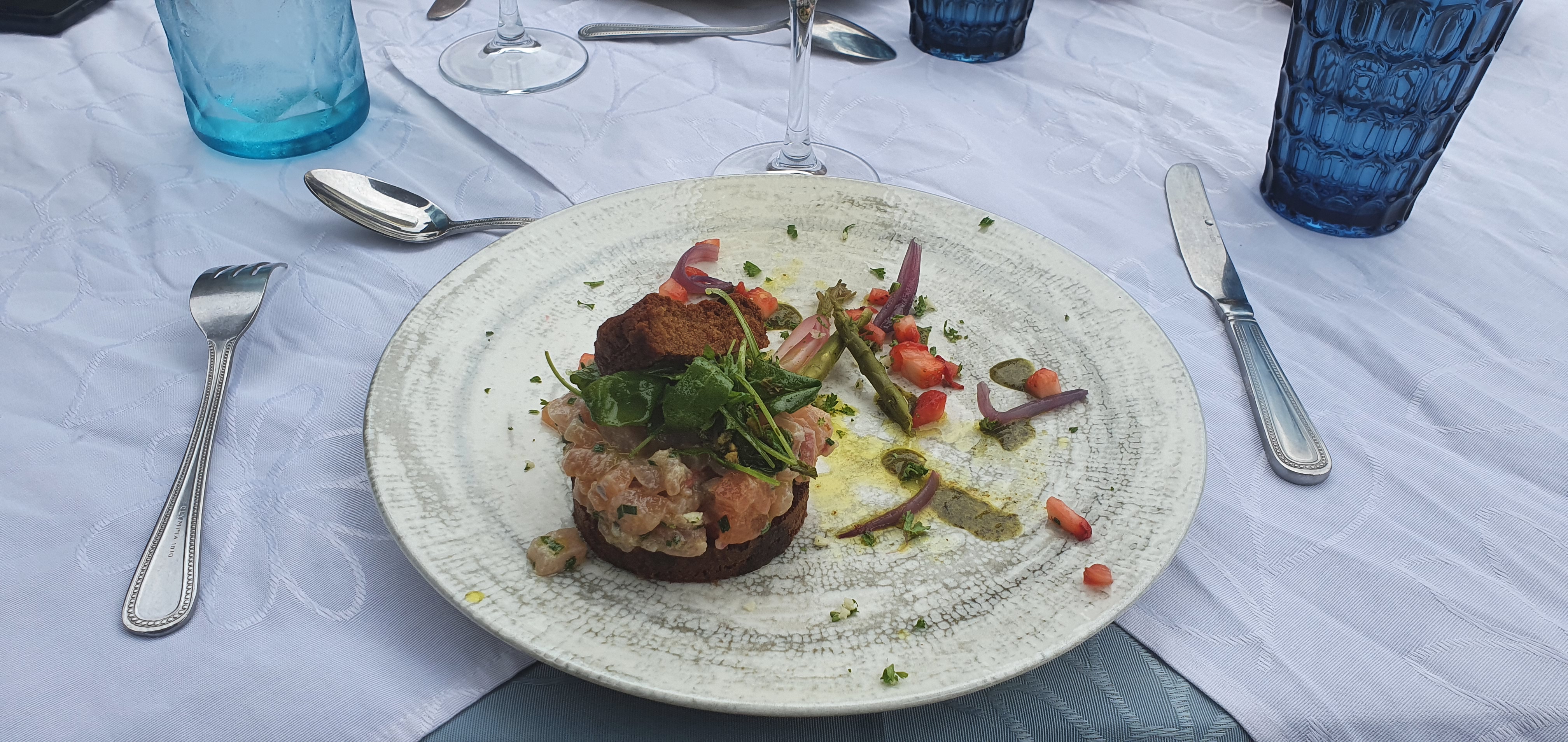 Accueil ok. Menue tres bon. Salad comme plat bon, mais pas assez grand. Les fumeurs derange sous les parasol