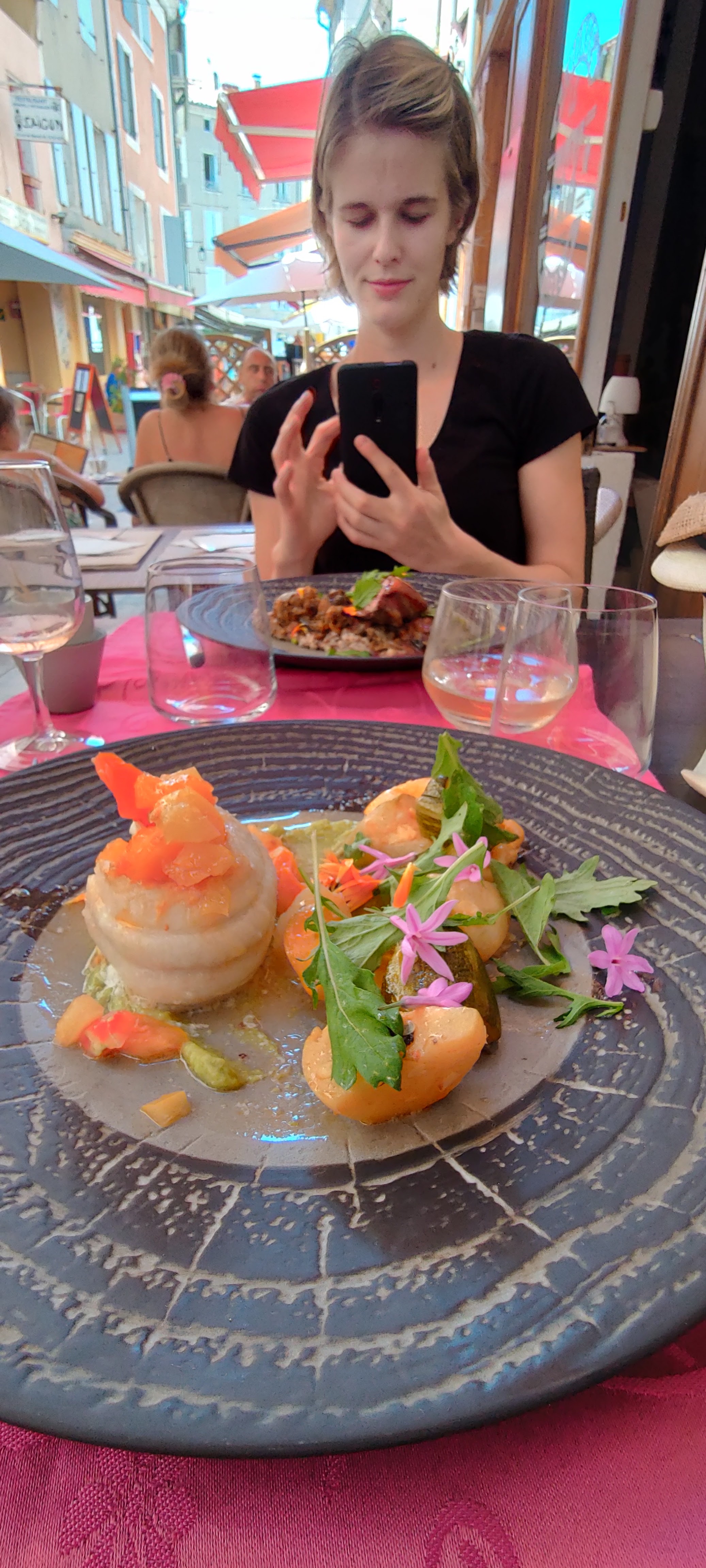 bonjour trés bon restaurant. sort de l'ordinaire.trés fin. nous avons apprécié le repas du midi et de plus le personnel agréable, connait son métier. nous a bien conseillé sur le vin. nous sommes venu avec notre chien pour visiter nyons le 7 août. j'ai oublié de prendre en photo l'entrée. bonne continuation au cuisinier et son personnel, ils le méritent.