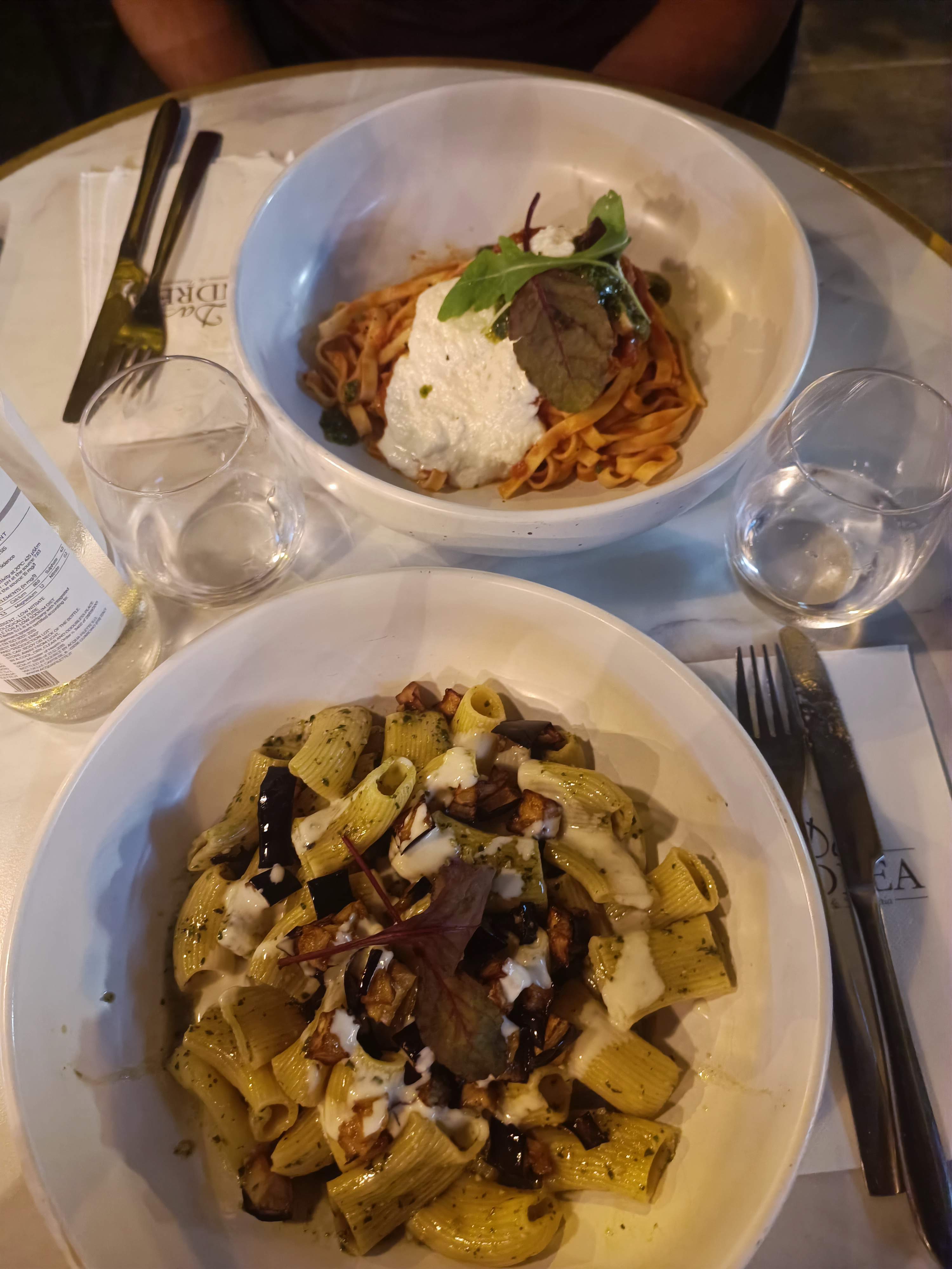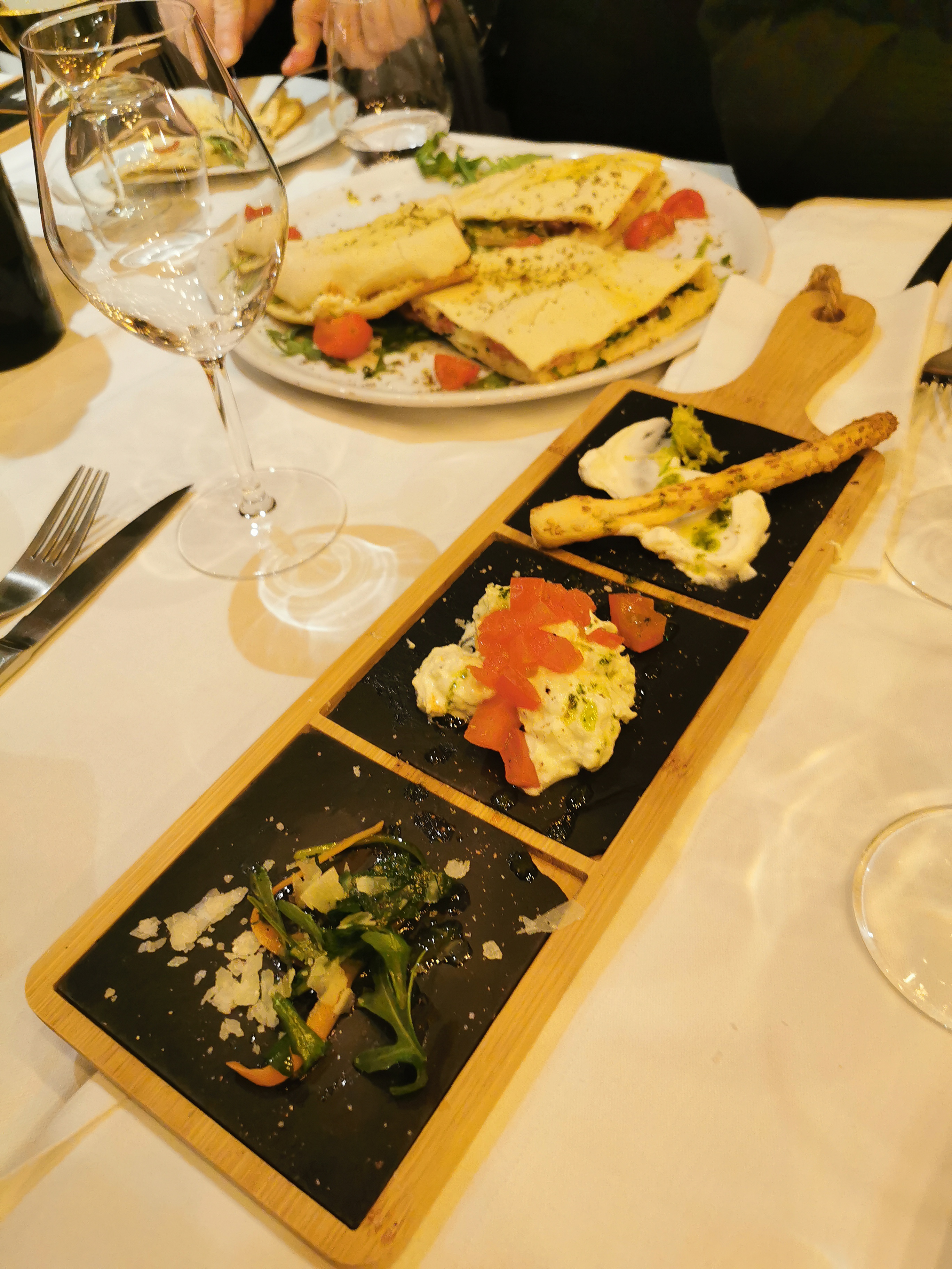 Testé le premier soir, nous sommes revenus le deuxième aussi ! Un endroit très sympa, privé bien qu'il soit sur la route principale, le personnel est très gentil et même ceux qui ne parlent pas italien essaient avec un certain succès :D quelle que soit la langue, la courtoisie est générale et les plats sont excellents. Nous avons essayé deux entrées et un morceau de viande, les pâtes étaient bonnes et copieuses et la viande était cuite comme demandé. Malgré le menu peu complet, il y avait plusieurs options végétariennes parmi les premiers plats. L'addition du premier soir, entrée + 2 entrées, 47 €. Hautement recommandé.