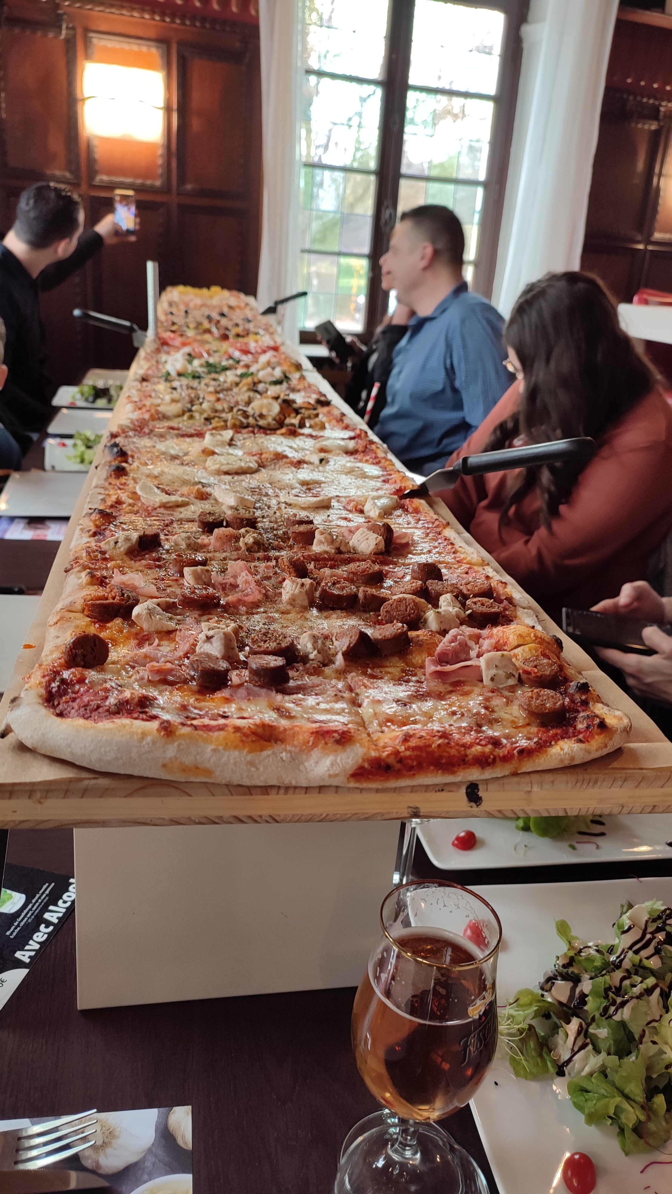 Parfait toujours très convivial, le repas est très très bon et le concept pizza de plusieurs mètre est génial !! 🤩👍🏼