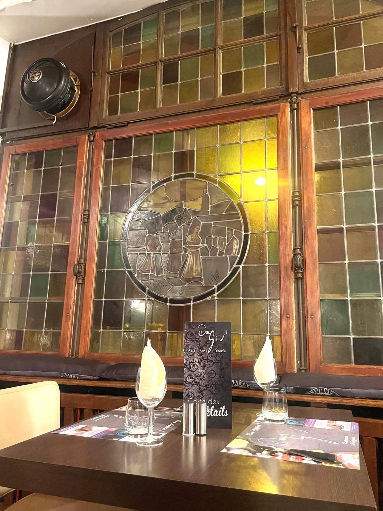 Quelle ambiance !! Le service est au top, on a bien rigolé on a été servi comme des rois 😍 groupe de 14 personnes donc on a pris les pizzas géantes (3m) c’était dingue, une entrée phénoménale avec musique et bougies ! Le restaurant a une déco atypique des vitraux aux fenêtres, super canon :-) Je recommande pour passer un bon moment entre amis !