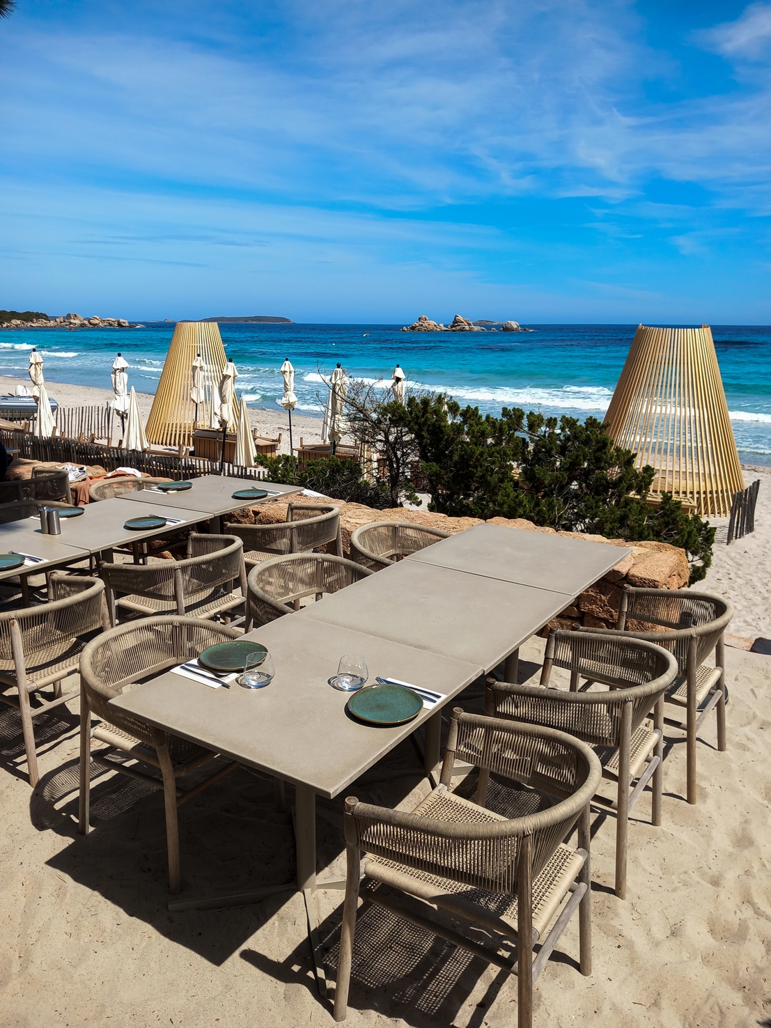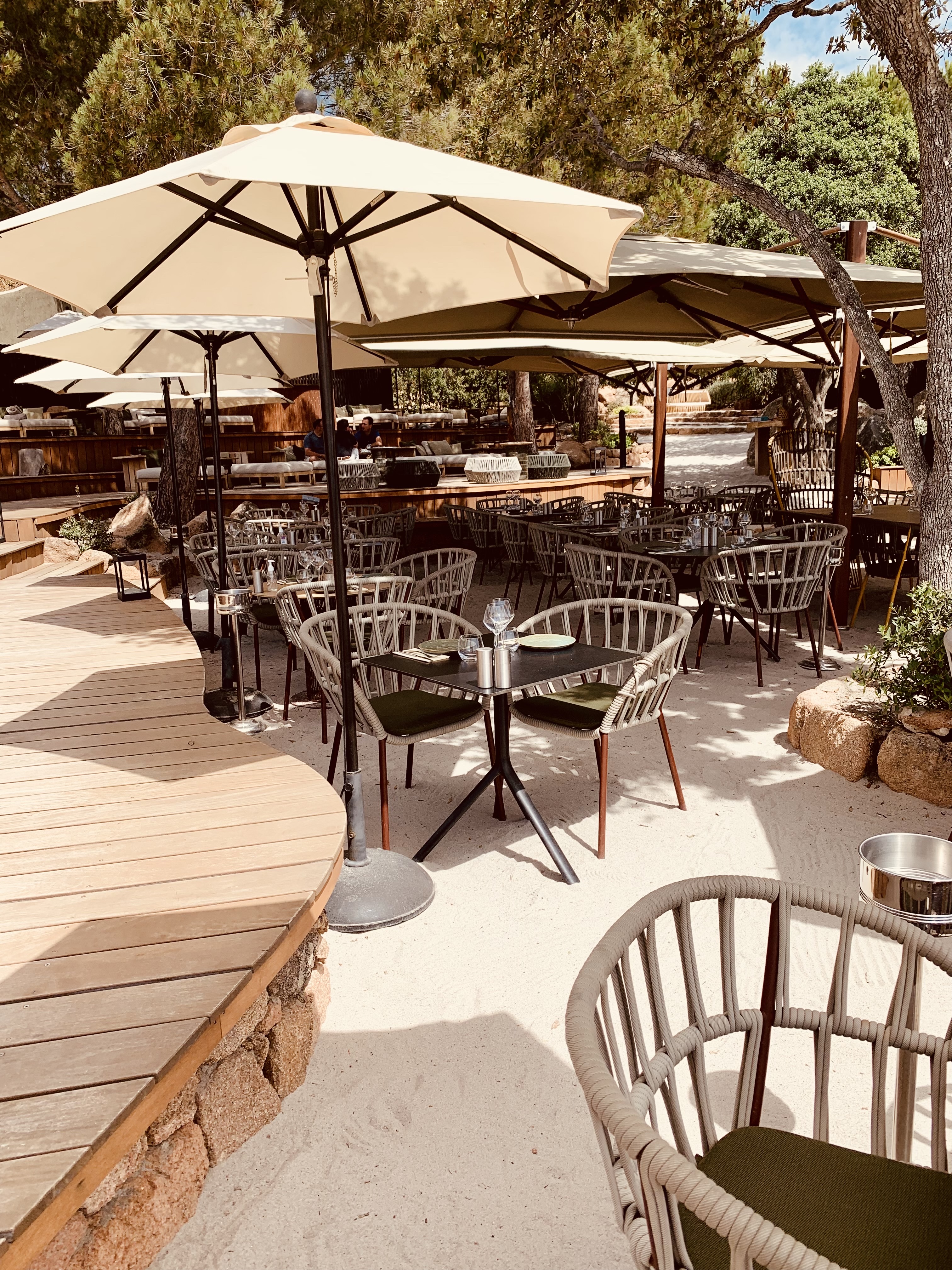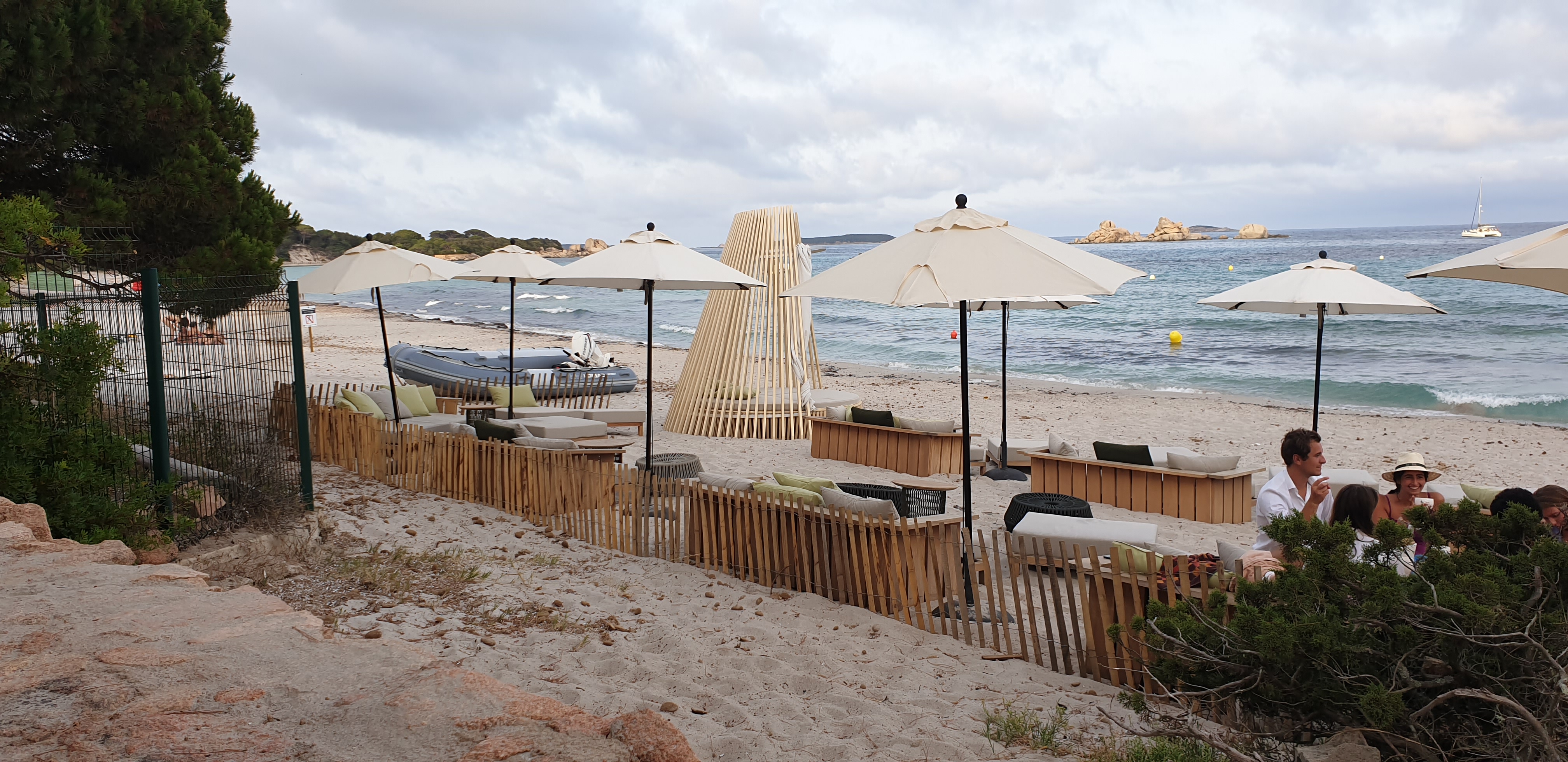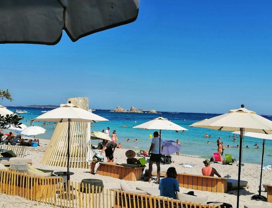 Magnifique endroit de détente et restauration au bord de la plage de Palombiaggia. Le plus classe de toute la plage .