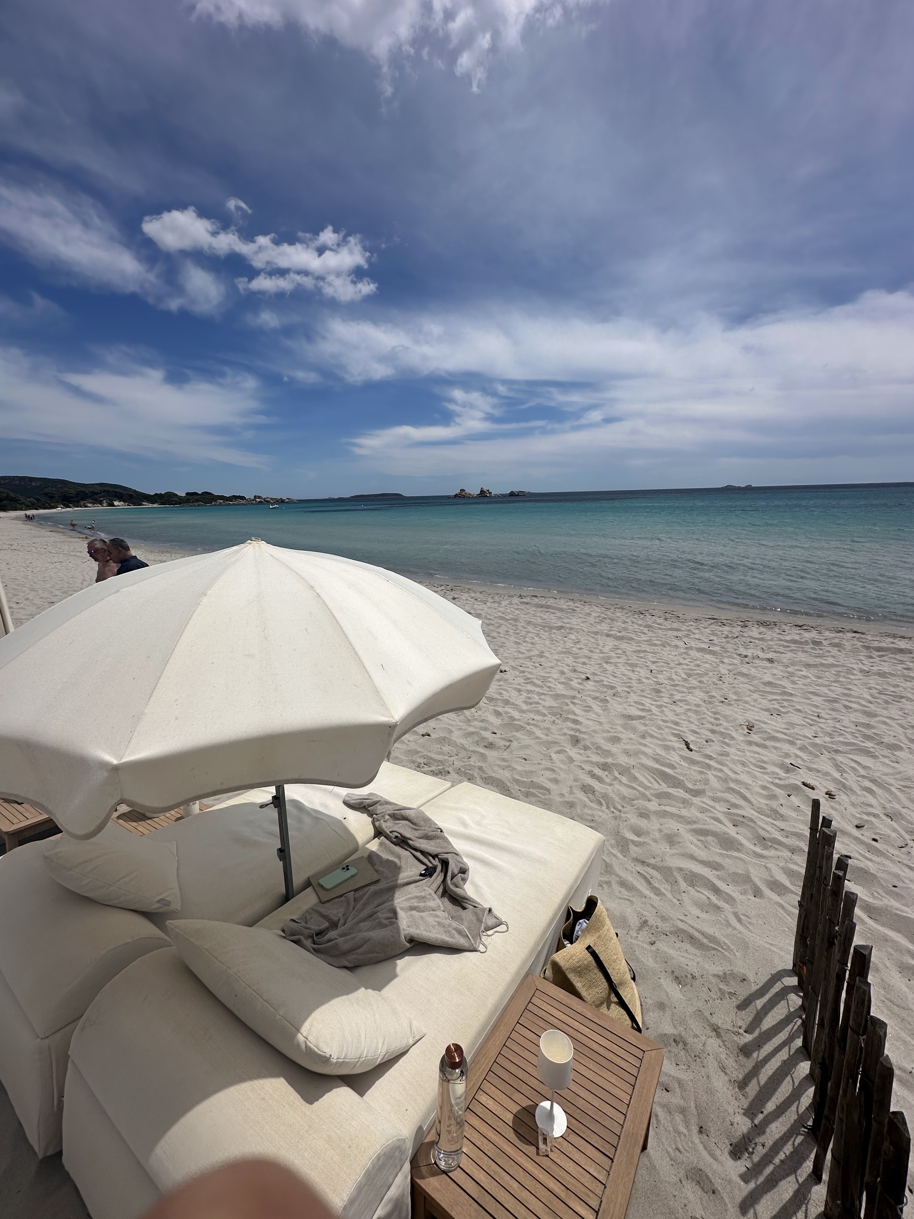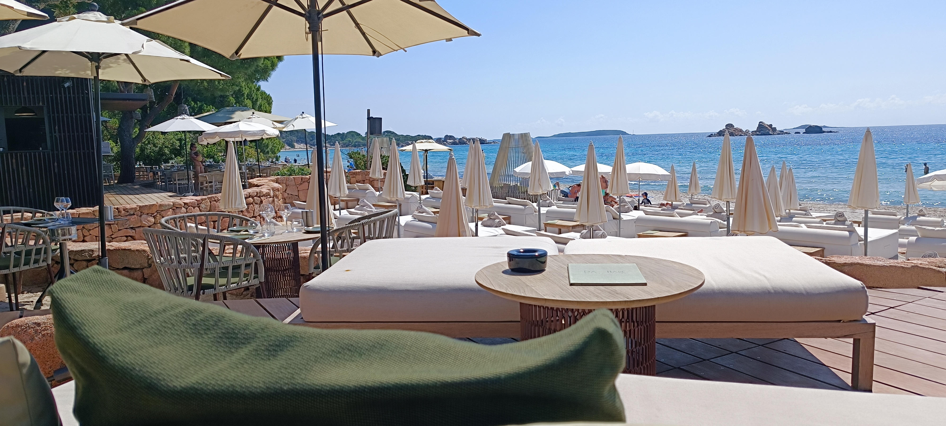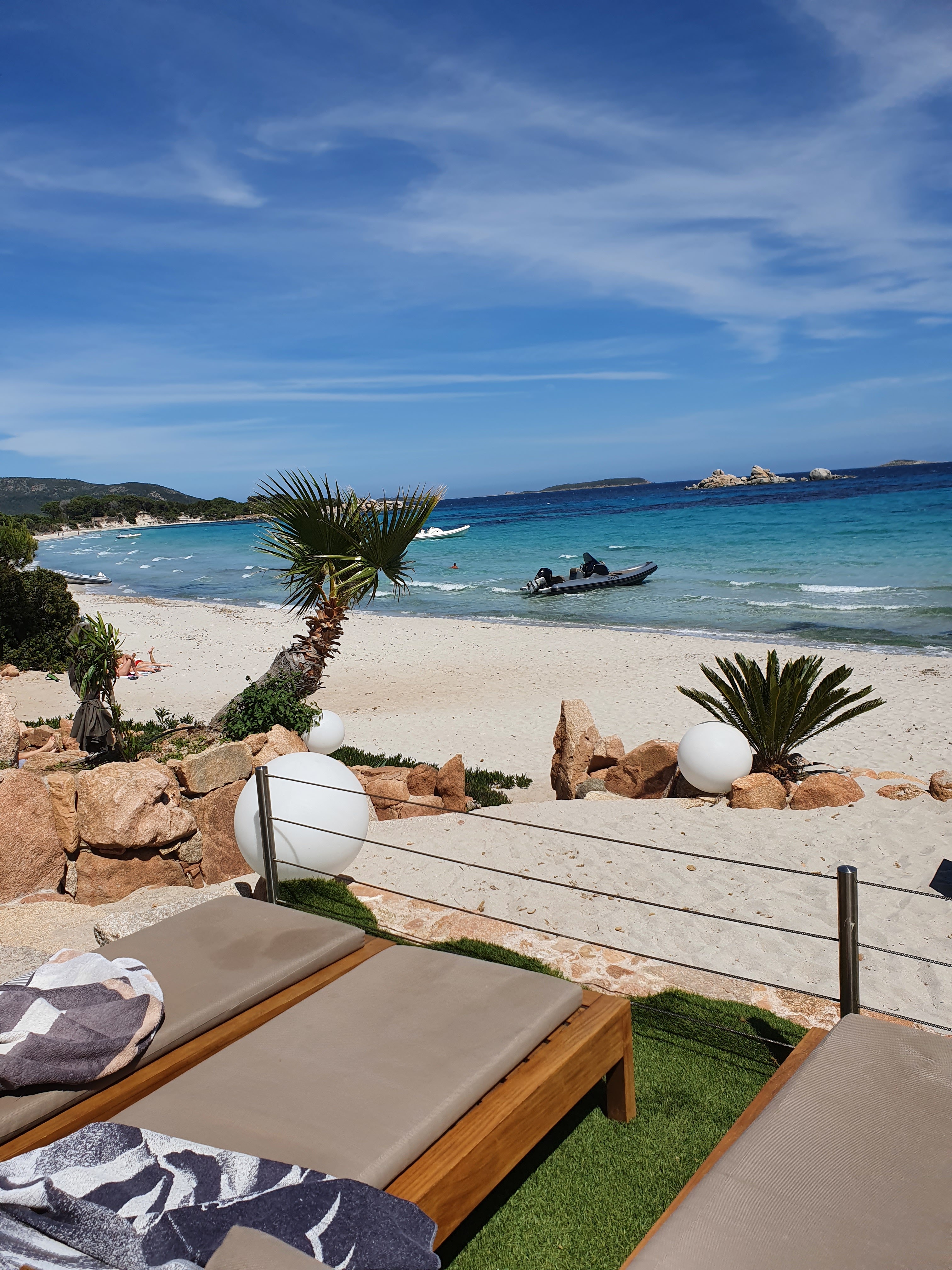 Vous connaissez le paradis ? Un cadre idyllique donnant sur les eaux turquoises de la plage de Palombaggia, un personnel au petit soin, une (très) bonne cuisine et un service haut de gamme rythmeront votre séjour. Les Beds vous accueillent avec serviettes pour profiter au mieux de votre journée. Les tarifs (très corrects) correspondent aux prestations, compter 60€ / jour pour deux personnes, les plats sont quant à eux proposés aux alentours de 20€ le midi. Soft, cocktails et rafraîchissements sont proposés à des tarifs doux (Virgin Mojito à 10€) Une très belle adresse à faire absolument si vous êtes de passage à Porto Vecchio et alentours. Pensez à réserver ! Un grand merci à l'équipe qui a été particulièrement accueillante avec une mention spéciale pour Claudia et Caroline. A bientôt ! Andrea, Romy & Cie